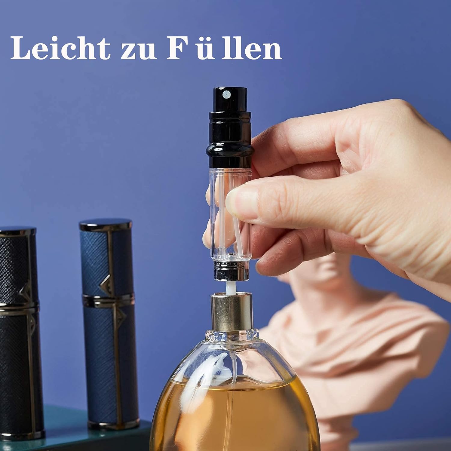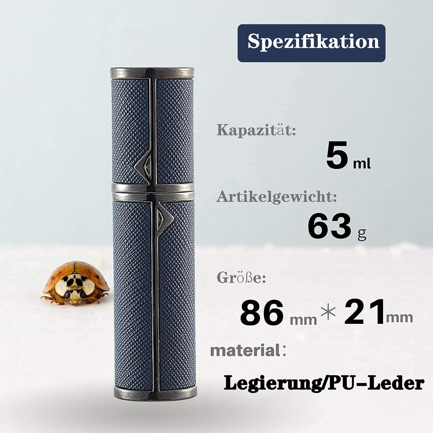 Ob auf Reisen, Dienstreisen oder in der Handtasche, man hat seinen Lieblingsduft immer dabei ohne den gesamten Flakon mitnehmen zu müssen. Einfaches Befüllen, auslaufsicher und gut verarbeitet. Sieht optisch hochwertig aus und fühlt sich gut in der Hand an (gewicht , lederartige Textur), im Gegensatz zu manch günstigen Mehrfachpackungen. Optimale Menge mit deinem Sprühnebel, jederzeit nachfüllbar. Habe zwei bestellt, damit ich nicht auf einen Duft eingeschränkt bin.