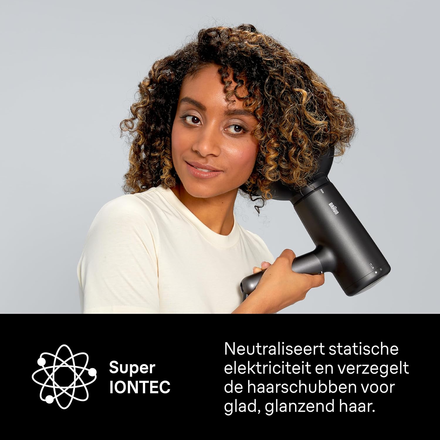 Braun Föhn HD4.2, Hoogwaardige Lichtgewicht Föhn met Diffuser voor Krullend Haar en Föhnopzetstuk, Super IONTEC Technologie, 2100W HTDC Motor met 3 Verwarmingsstanden en 3 Snelheidsstanden, BRHD425E