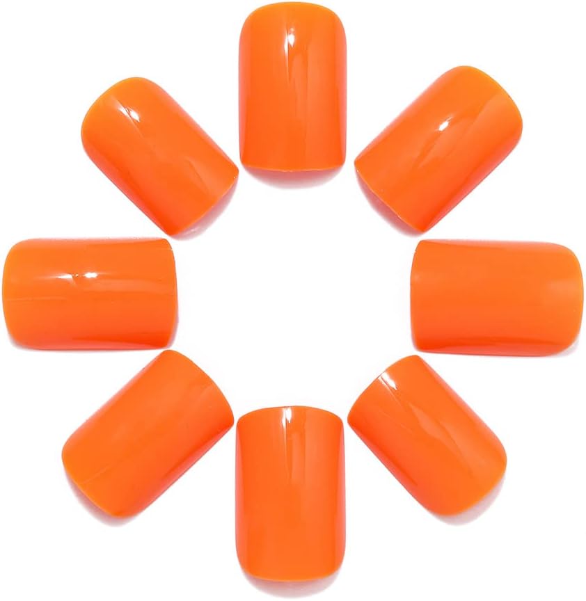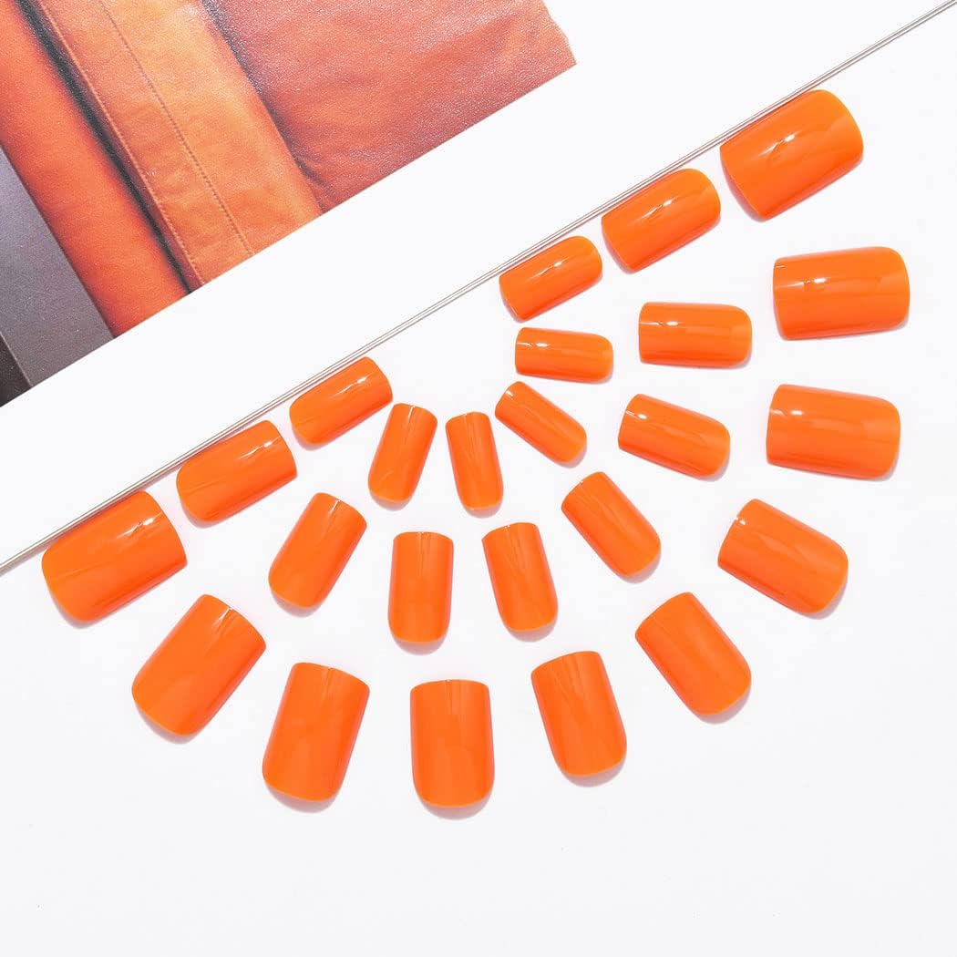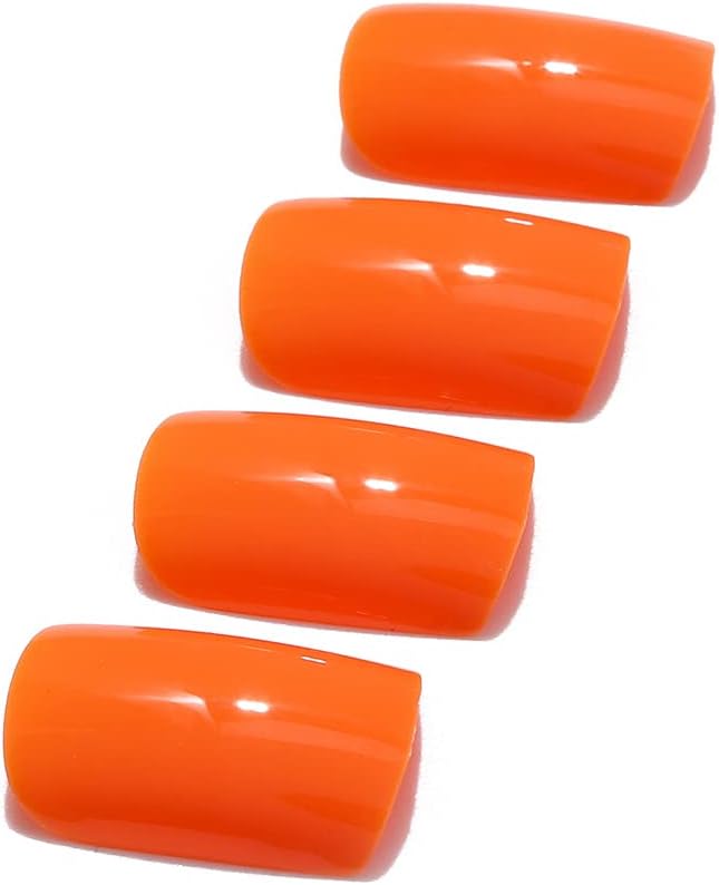 Brishow Korte glanzende vierkante kunstnagels – pure kleur Press-on ballerina acryl stick-on nagels – 24 stuks voor vrouwen en meisjes (oranje)