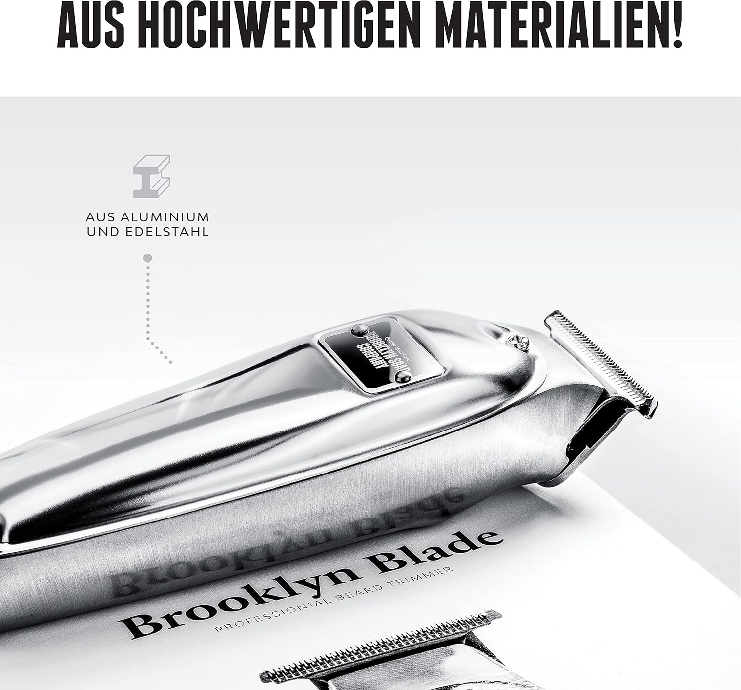 Brooklyn Blade® · Brooklyn Soap Company · professionele baardtrimmer voor thuis · trimmer van roestvrij staal met 5 opzetstukken voor alle baardlengtes