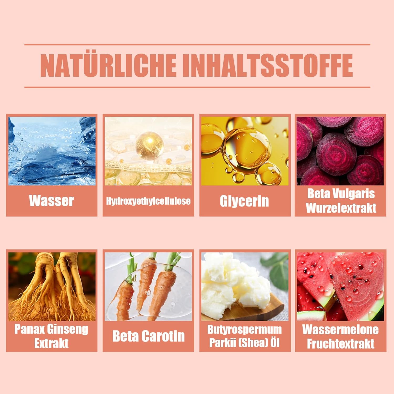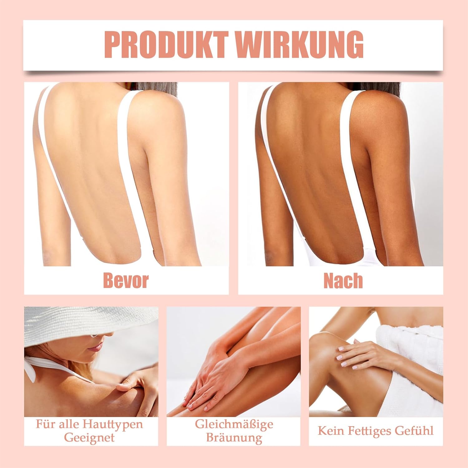 Vochtinbrengend en voedend: de bruiningsversneller bevat natuurlijke en veilige plantaardige ingrediënten zoals ginseng en wortel, die voedende en hydraterende eigenschappen hebben, die de huid diep van vocht voorzien, droogheid en spanningsgevoelens voorkomen en tot een gladdere en gehydrateerde huid leiden.