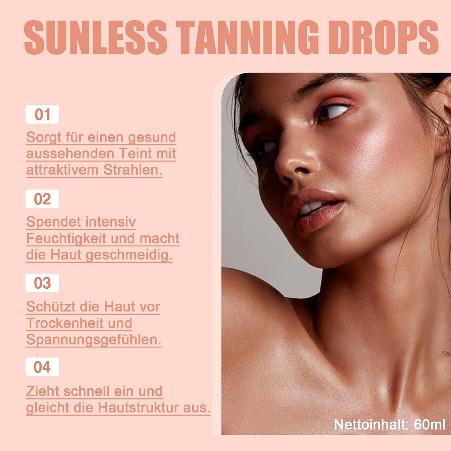Bruiningsdruppels, 60 ml, zelfbruinende druppels, druppels voor natuurlijke verhoging van melanine, bronzing druppels voor gezicht en lichaam, veilig en effectief, zelfbruinende druppels, langdurige