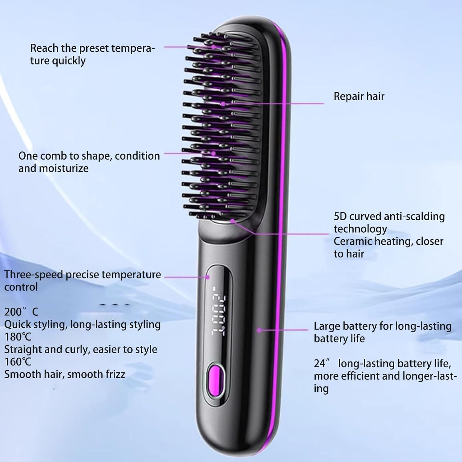 Brusheo Hair Pro stijltang, draadloos, 2-in-1 stijlborstel voor haar, draadloos, stijltang met negatieve ionen met 3 temperaturen