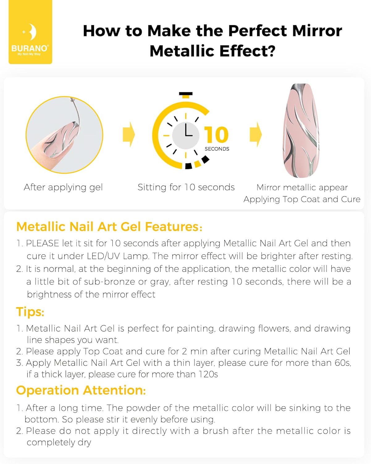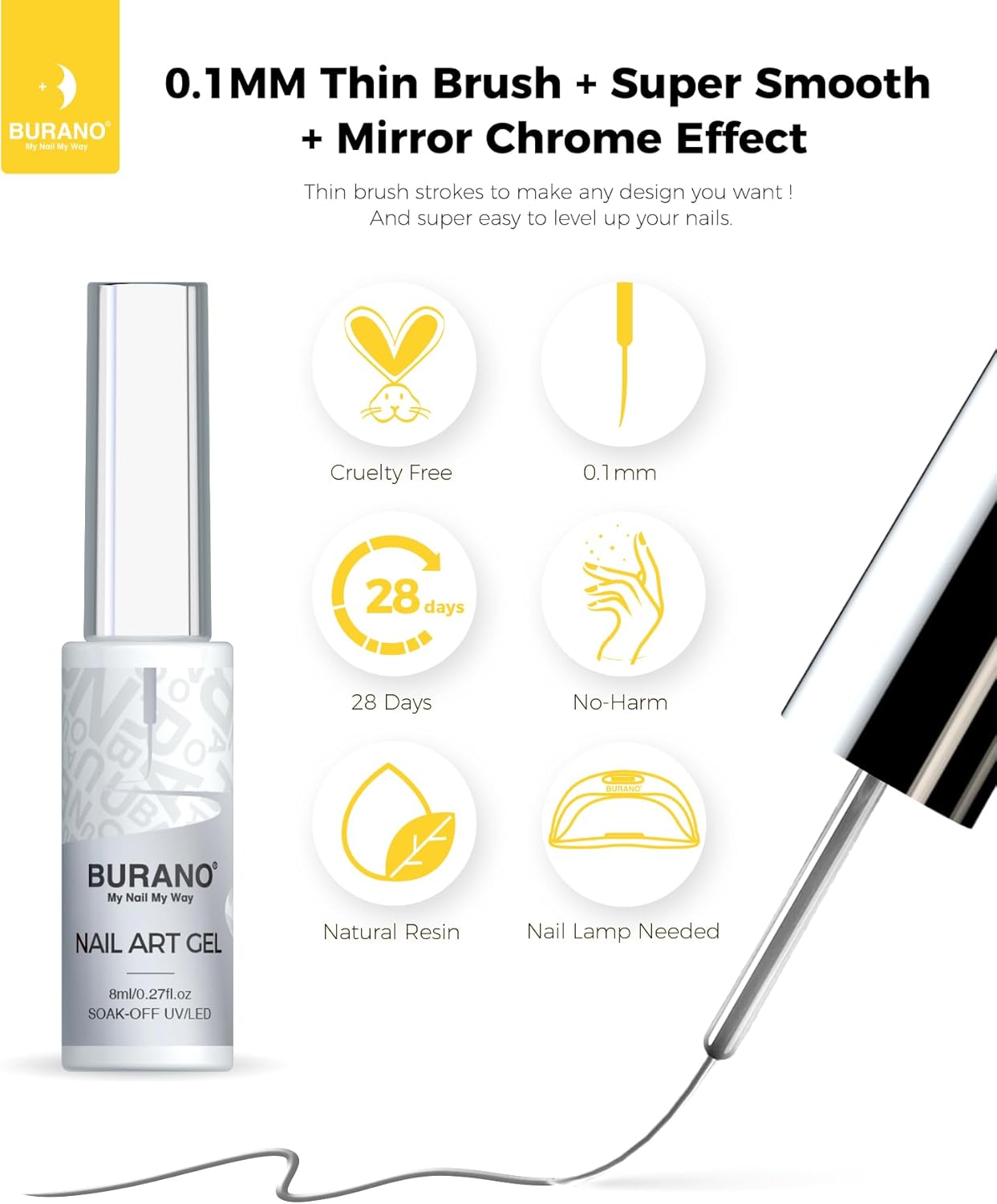 💙【Duurzame 21+ dagen】BURANO Nail Art Liner Gel Nail Polish kan 21+ dagen duren, geschikt voor elk nagelsysteem. Geen lifting, geen schade metallic gel nagellak, zilveren gel art liners voor nagels.