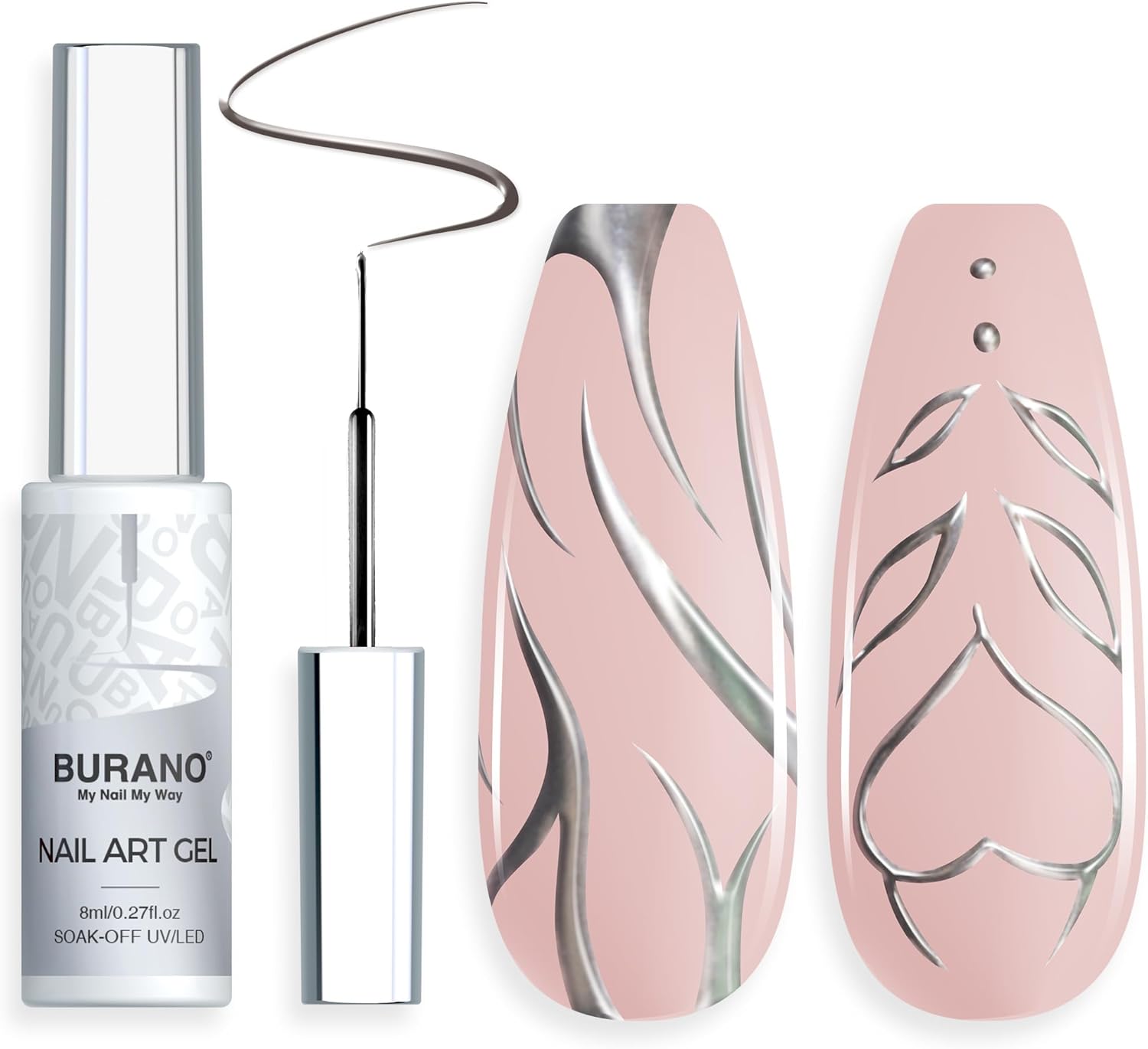 BURANO Gel Nagellak 8ml, Liner UV LED Gellack Gel Polish, Liner Nagellak Nail Art Manicure Pedicure, Professioneel Salon Thuisgebruik (silver)