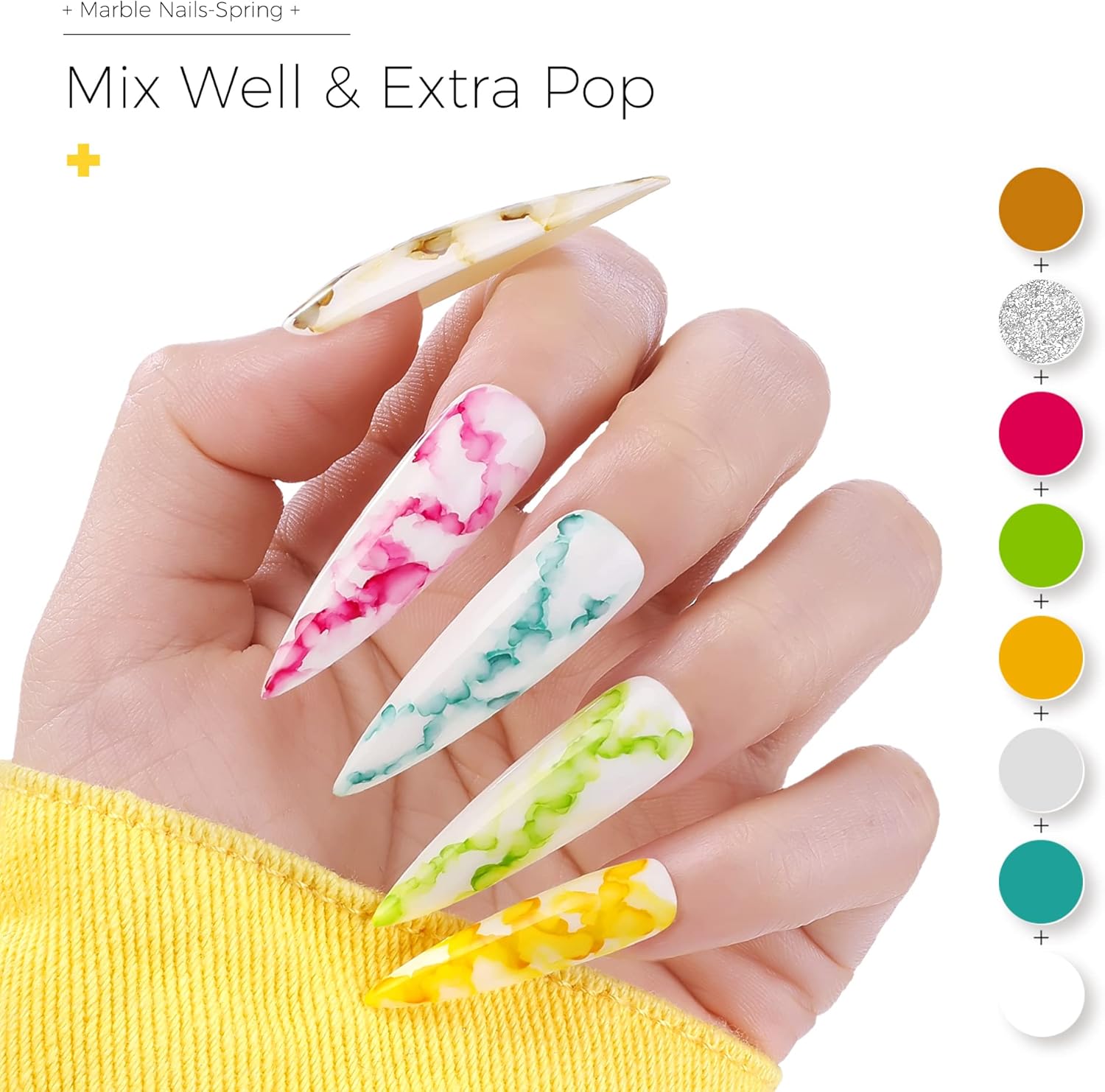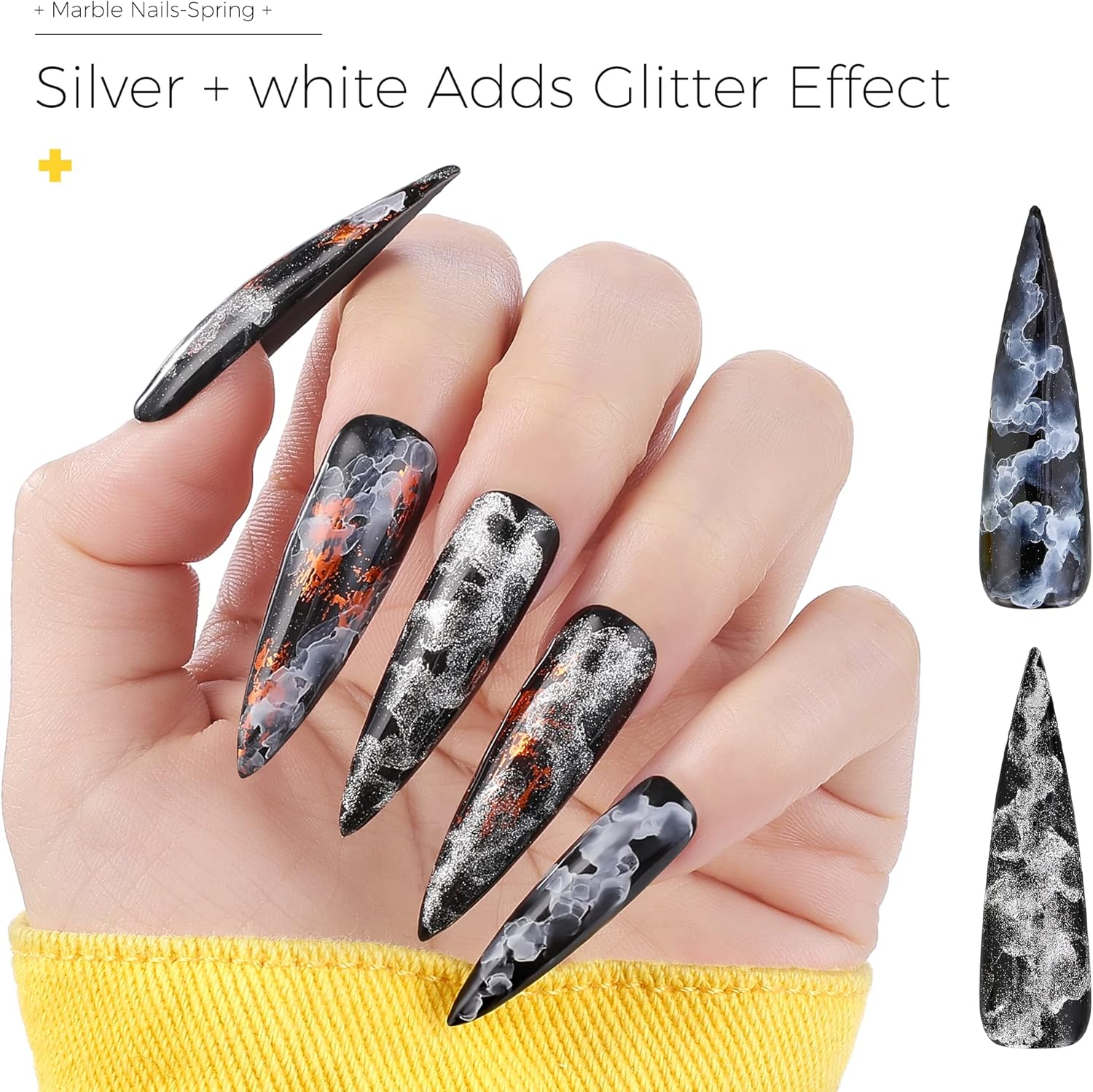 Beste betaalbare marmernagelinkt tot nu toe — Sneldrogend, lamp hoeft niet te worden uitgehard. De gekleurde marmerinkt voor nagels met bloeiende nagellak heeft slechts 15 seconden nodig om op te drogen.