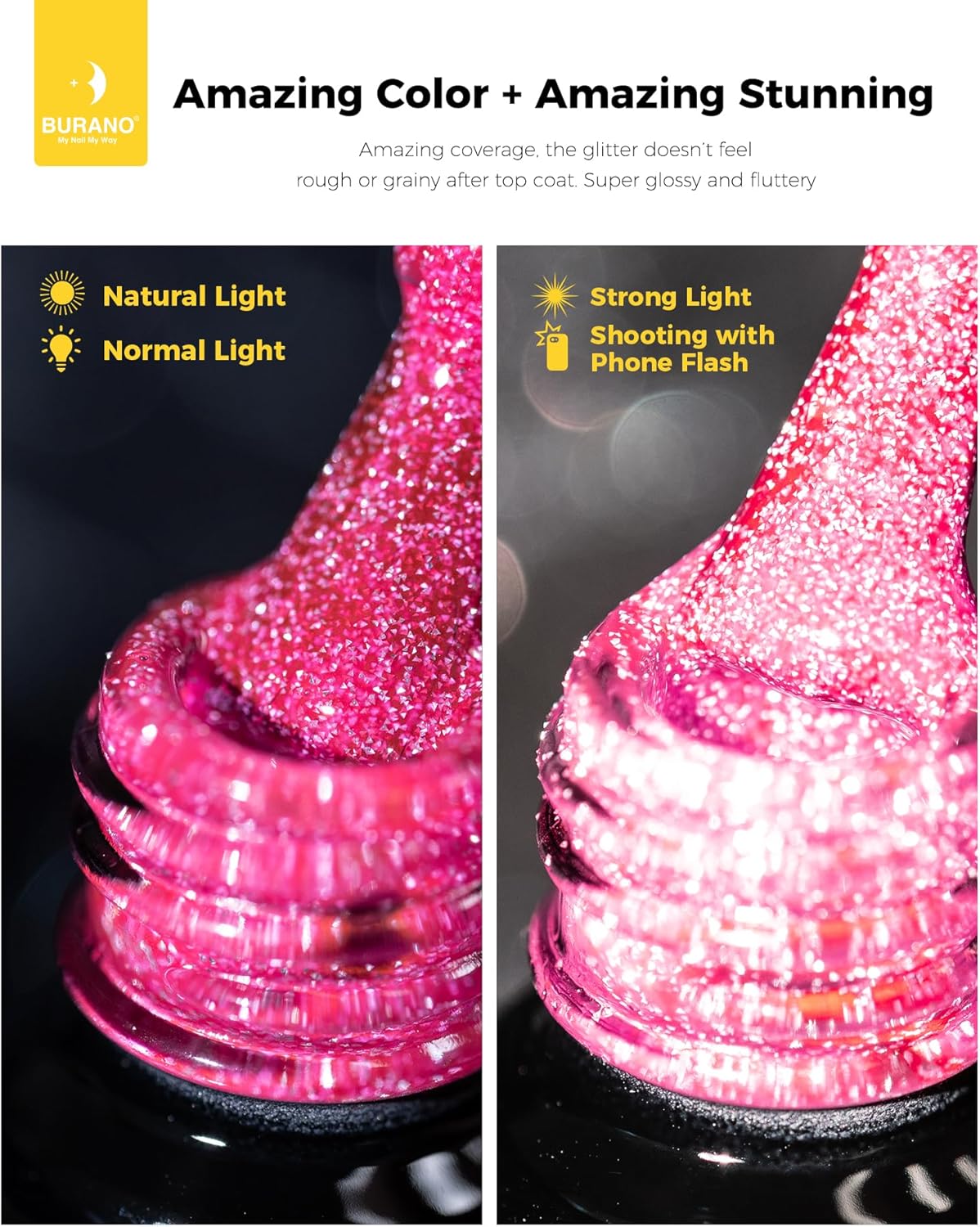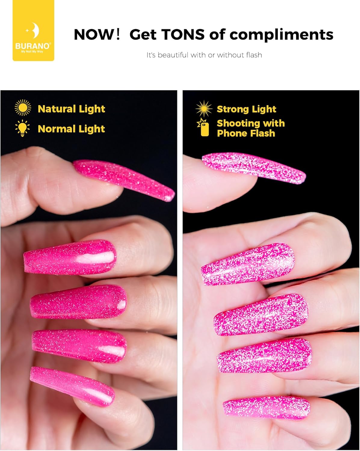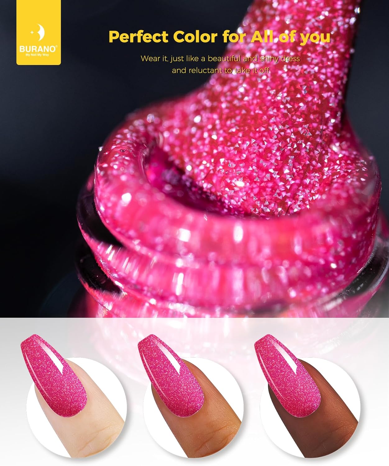 💙 【Verbeterde Versie Glitter Kleuren Reflecterende Nagellak】Toxinevrij Ingrediënt, BURANO Nail Gel Polish is gezond en geurloos. Glanzend als diamant, BURANO Glitter Gel Polish Reflective Sparkling Nail Polish maakt de super glanzende gel.