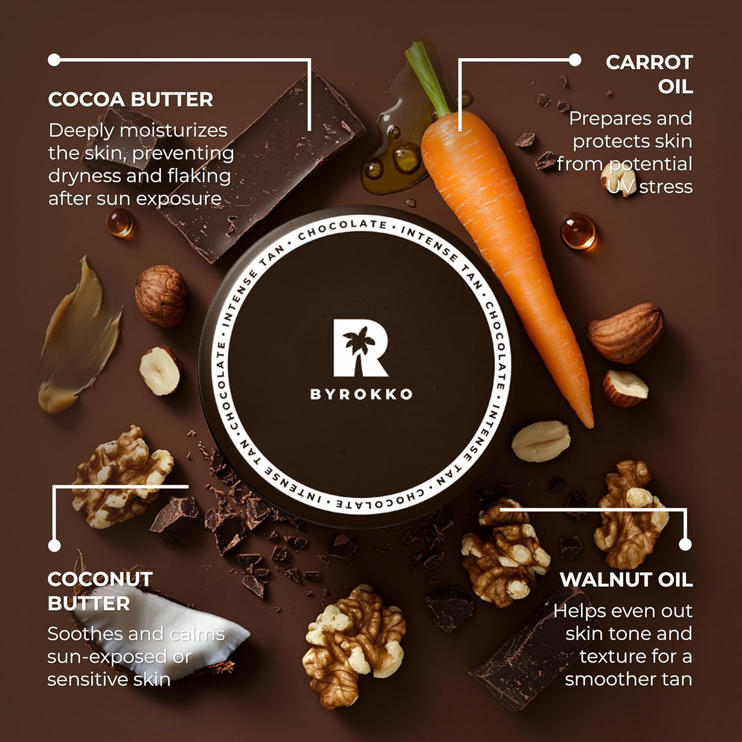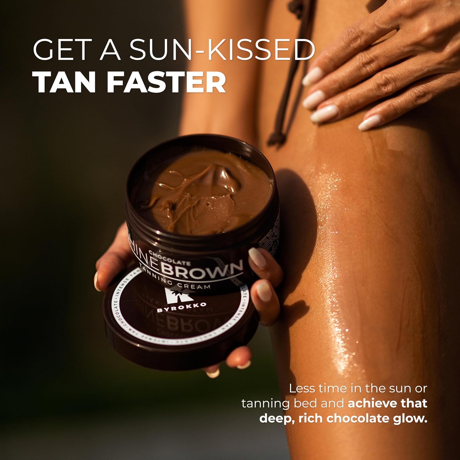 BYROKKO Original Shine Brown chocolate Tanning accelerator cream 200ml Super XXL fast bronzing cream for intense chocolate tan Effective in tanning beds and outdoor sun
