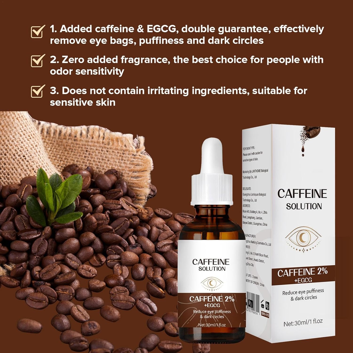 Cafeïne Oogserum, Onderoogcrème Voor Het Verminderen Van Kringen En Gezwollen Ogen, Cafeïne Oogcrème Tegen Veroudering, Voor Oogcontourpigmentatie En Wallen, Verwijdering Van Oogzakken, 30 Ml