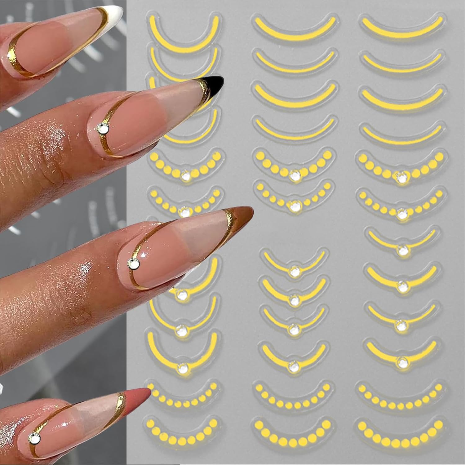 Calkker 6 vellen French lace nagellak stickers voor nail art, 3D zelfklevende goud-zilver lijnen nail art stickers nail tips designs.
