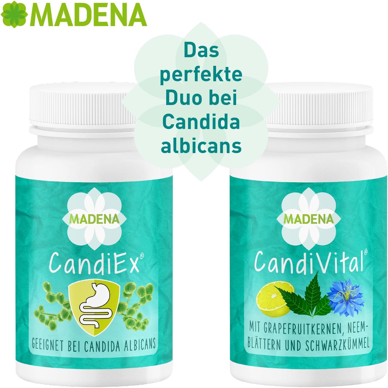Madena CandiEx is expliciet ontworpen voor mensen die getroffen zijn door Candida Albican’s overgroei en andere schimmelinfecties. In tegenstelling tot andere voedingssupplementen op de markt zien wij daarom bewust af van de toevoeging van andere gistschimmels zoals Saccharomyces boulardii. De gebruikte melkzuurbacteriën bevinden zich in een maagsapresistente capsule (DRCaps).