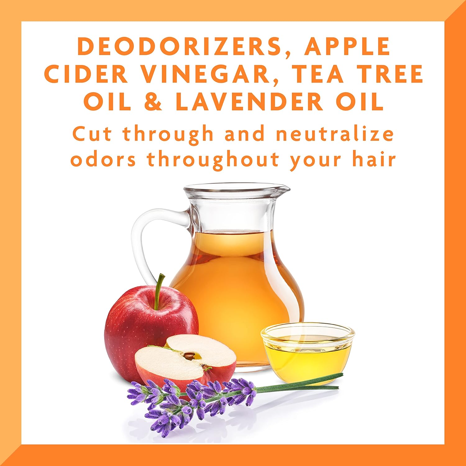 DEGORATING AND REFRESHING FORMULA: apple cider vinegar, tea tree oil, and lavender leave braids feeling and smelling fresh