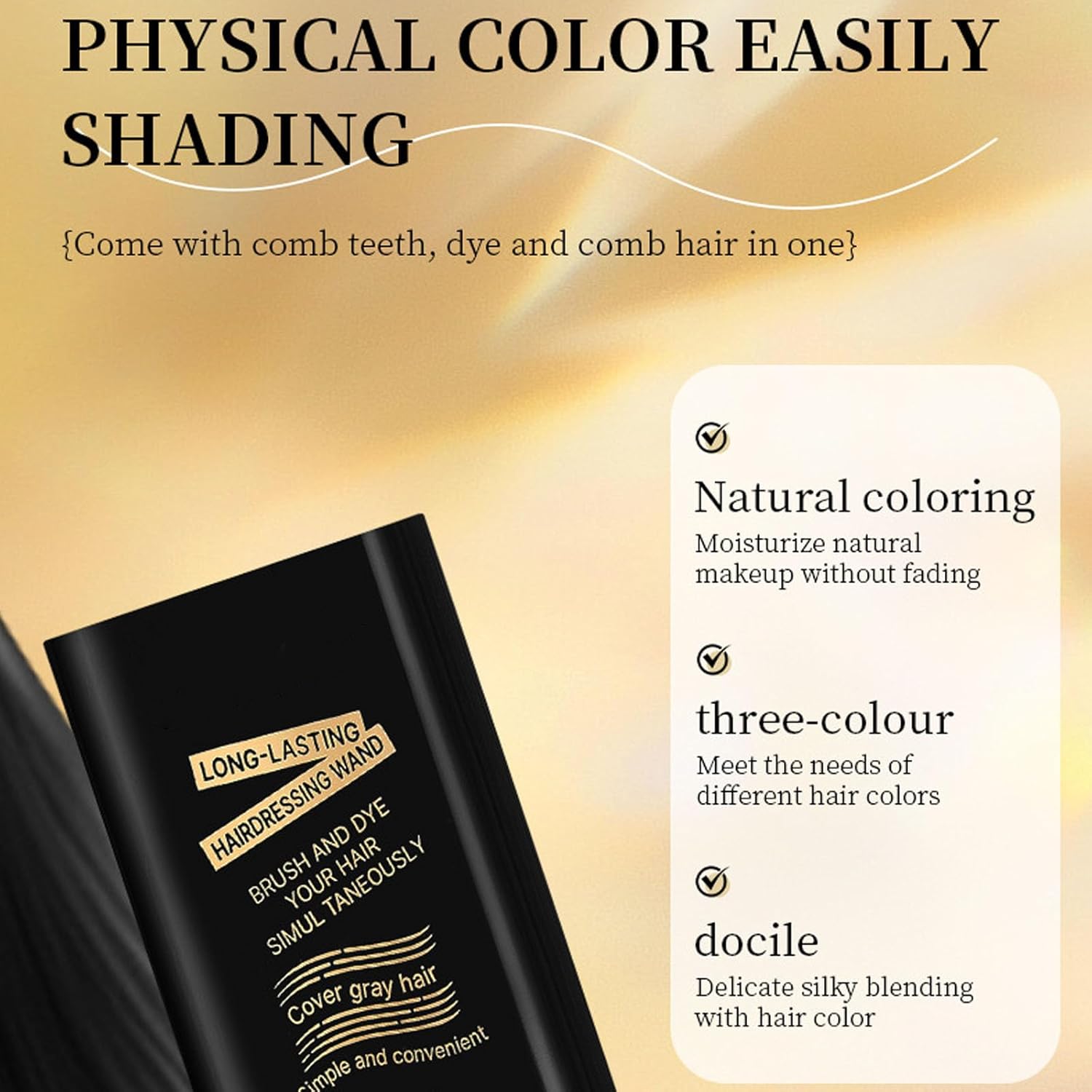 Ingebouwde Kam — Deze snelle, langdurige draagbare haarverfstick heeft een ingebouwde kam, die verven en kammen in één combineert. Kam je haar gelijkmatig door om het te verven, perfect voor drukke gebruikers.