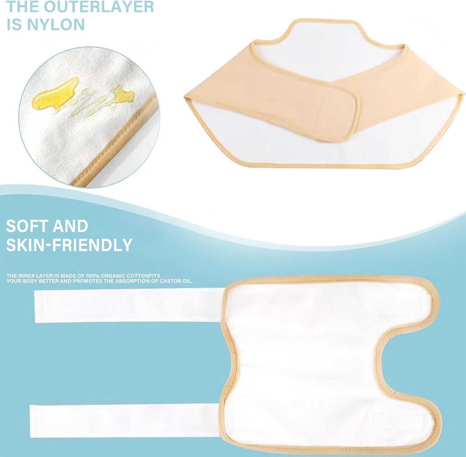 ✓ Castor Oil Pack Kit: de binnenste laag bestaat uit zachte flanelstof, die ricinusolie beter kan absorberen, en de buitenste laag is waterdicht en oliebestendig om lekken te voorkomen en olievrij te blijven.