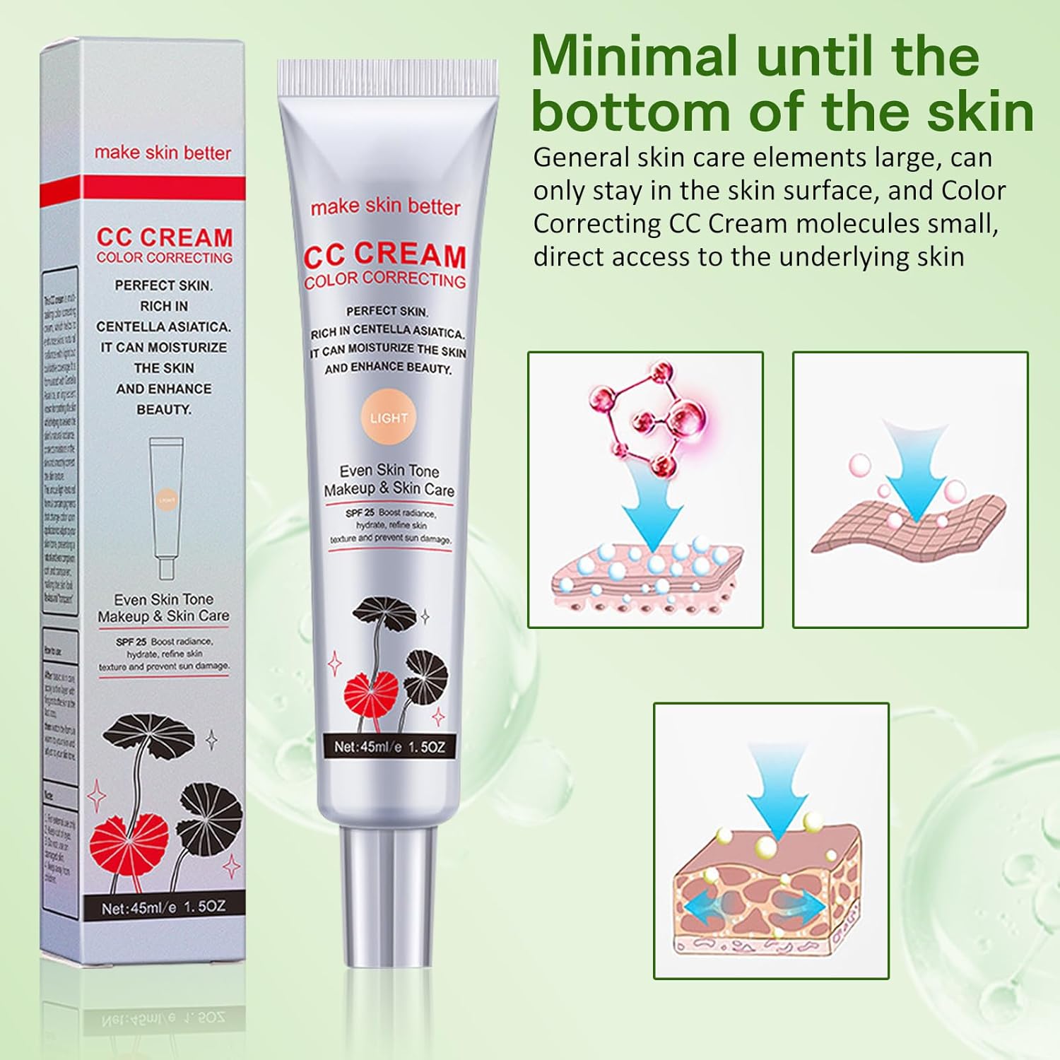 CC Cream Fluid Foundation, Crema CC Centella AsiáTica, CC Cream Light Color Pre-Makeup Concealer, Multifunction, Full Coverage, Makeup Color Corrector