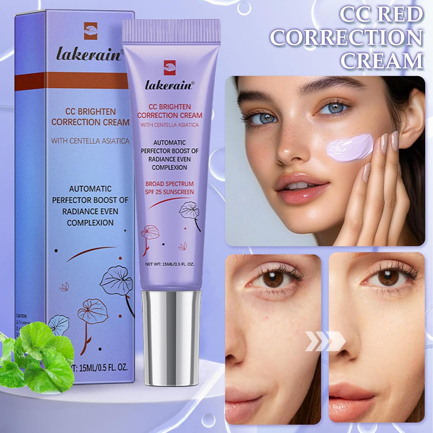 Lightweight and transparent makeup: CC Water Gel Correction Cream has a transparent gel texture, a transparent tinted concealer and moisturizes the skin. It is a multifunctional skin care product. The water and sweat-resistant Centella CC Cream Foundation lasts up to 24 hours and maintains your natural look all day without leaving stains or wrinkles.