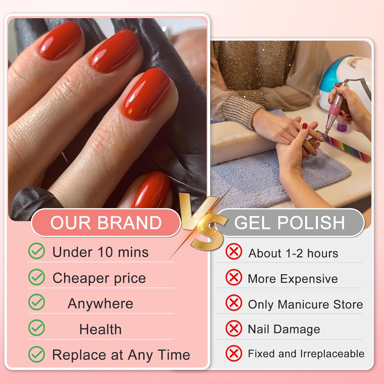 Amazing comfort: No more expensive and time-consuming salon searching, you can receive your favorite manicure anytime and anywhere in just 5 minutes. First, cut and clean your natural nails, select the nail piece that suits you, polish the nail bed, stick on the gel glue we gave and press trendy nails for 20 seconds to get the natural manicure that girls love.