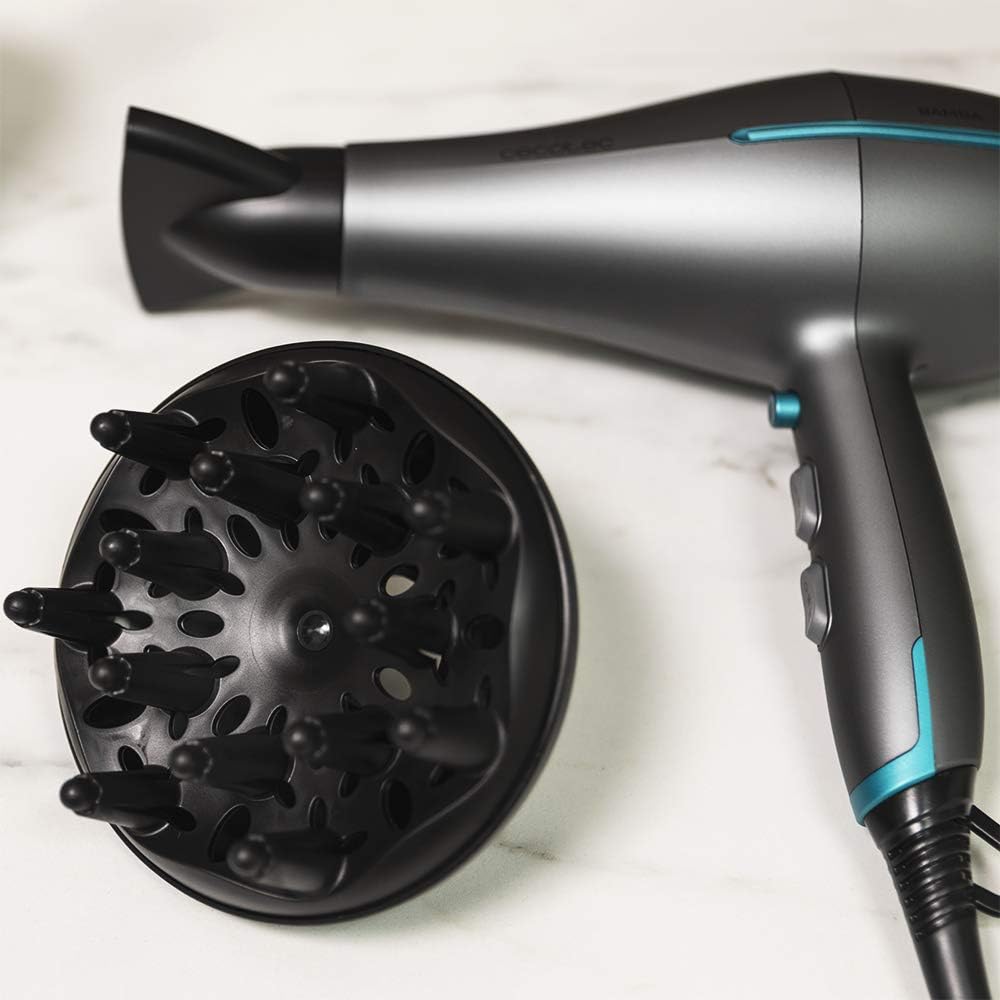 Het bevat een precisie-mondstuk voor nauwkeurig drogen en een diffuser met maxivolume om volume aan de wortels toe te voegen en de krullen te definiëren, waardoor ze flexibel en natuurlijk uitzien