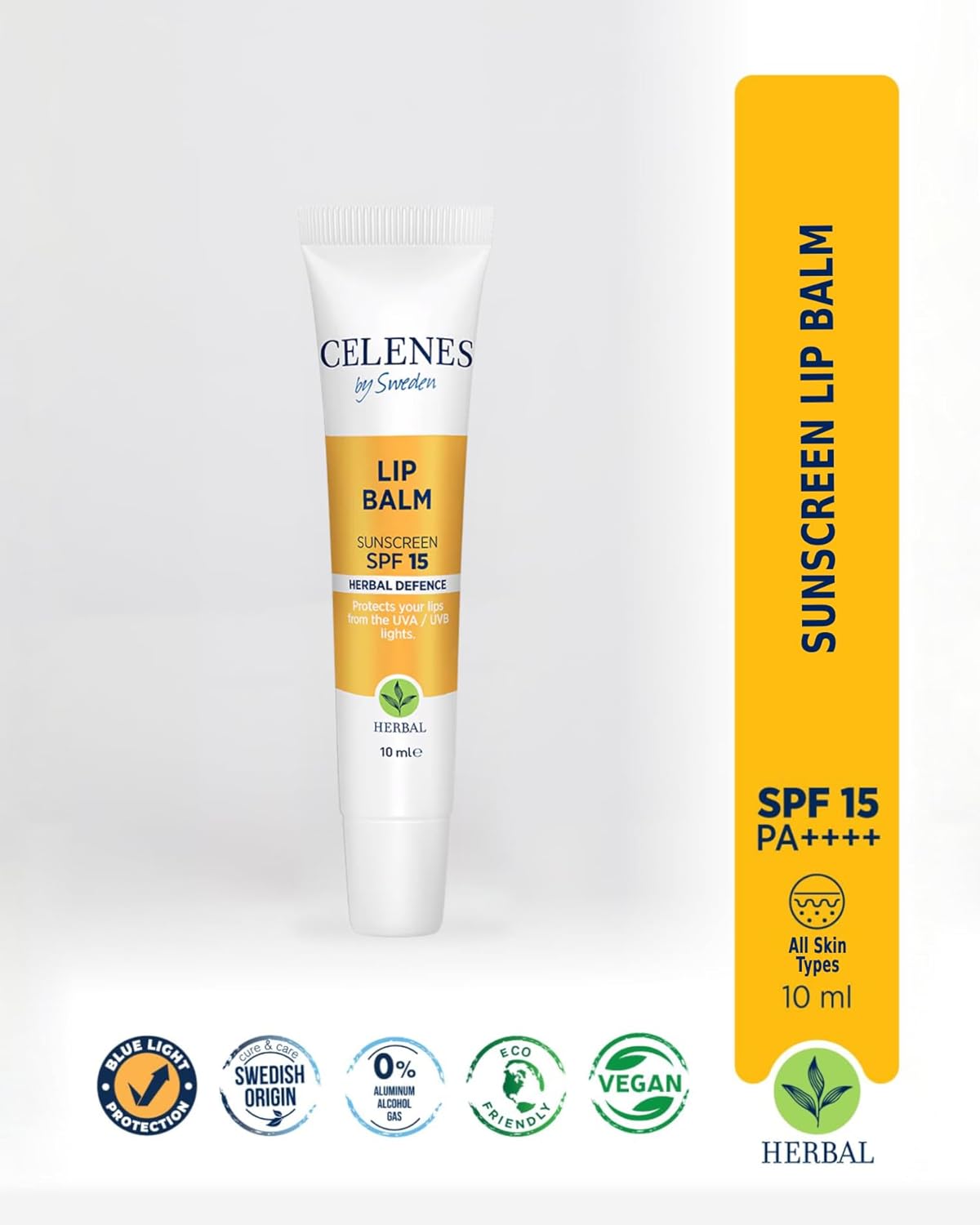 Celenes by Sweden Lippenbalsem SPF 15, Plantaardige Lippenverzorging – Set van 2 (10 ml) – Hydraterende Lippenbalsem voor Alle Huidtypes