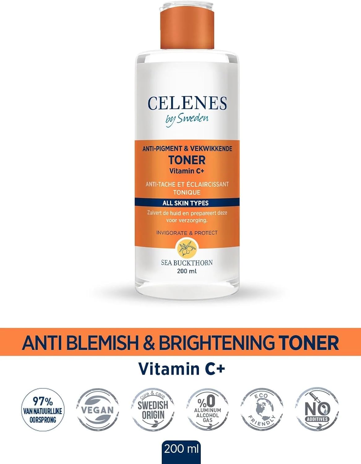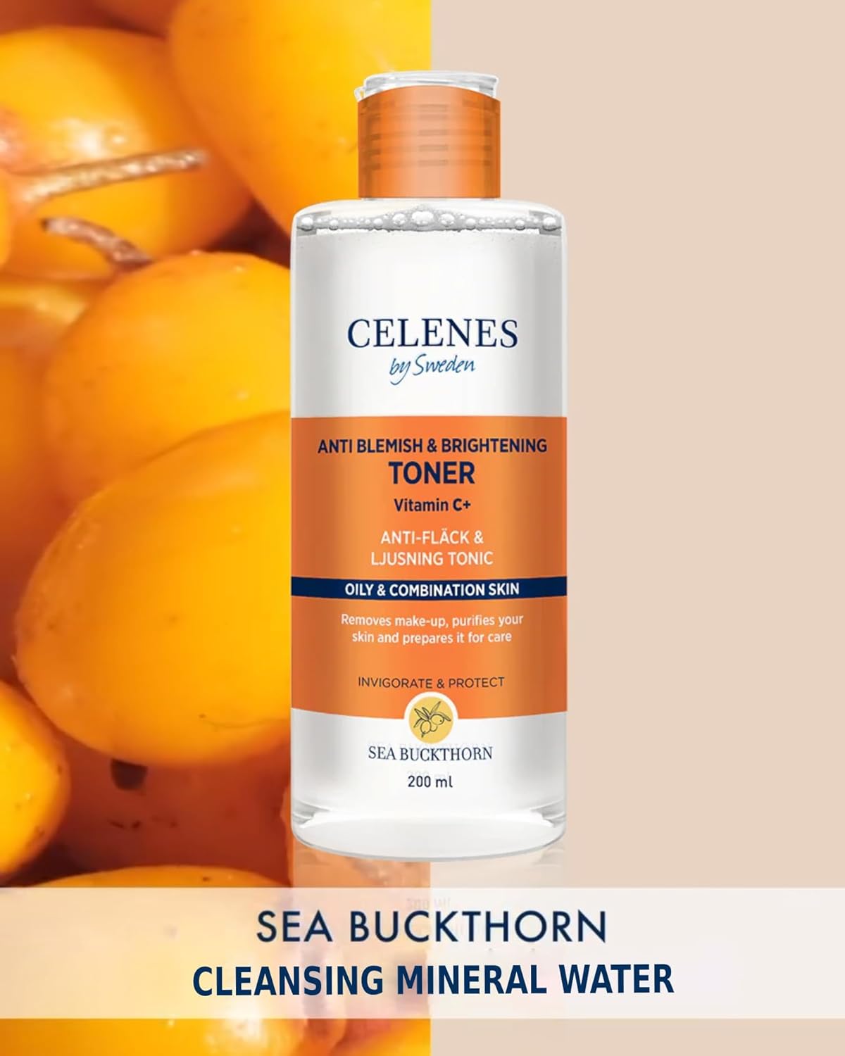 Celenes by Sweden Sea Buckthorn Anti-Puistjes & Verhelderende Toner – 200ml | Vitamine C, Niacinamide | Geschikt voor Alle Huidtypes, Inclusief Vette & Gecombineerde Huid | Parabeen- & Alcoholvrij