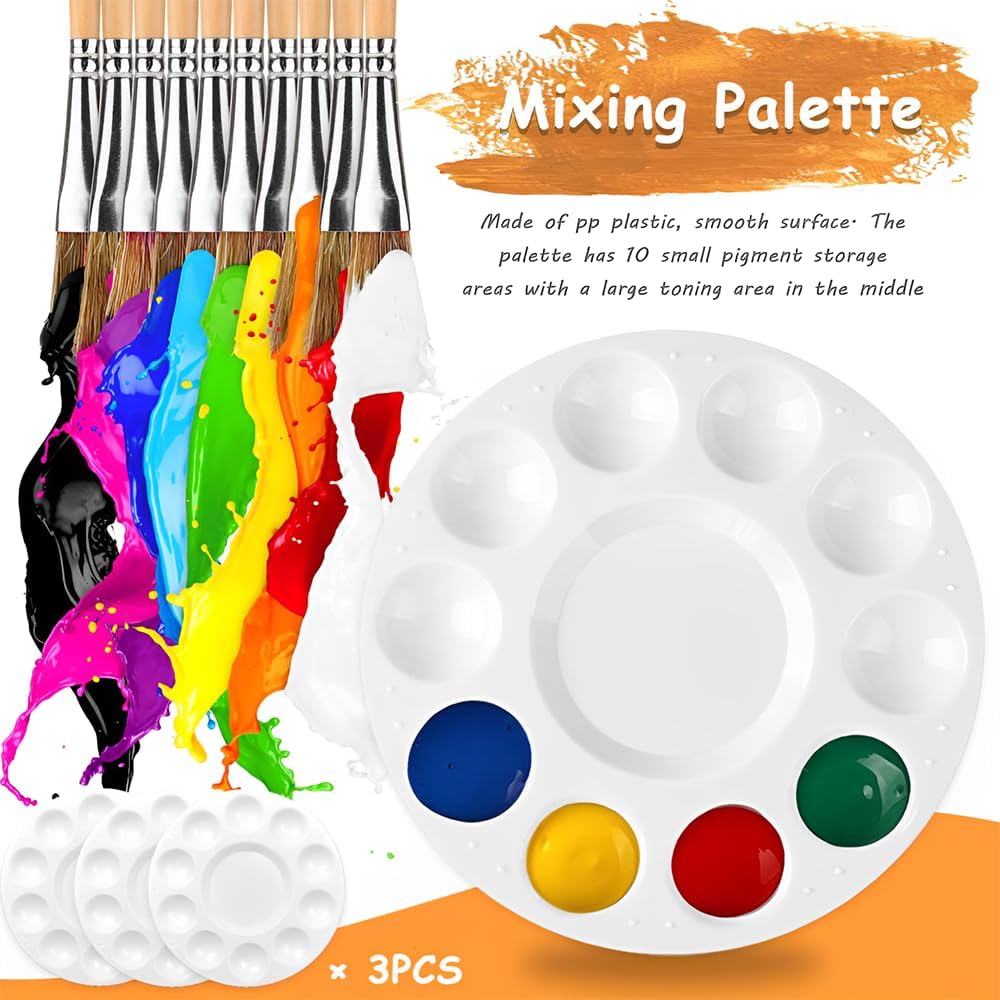 CENSIVI 3 Stuks Mengpalet – Kleurenpaletten Rond, Universeel Palet voor DIY Kunst Schilderen Rond Kleurenpalet met 10 Mengvelden voor Aquarellen, Olie, Acryl Schilderen