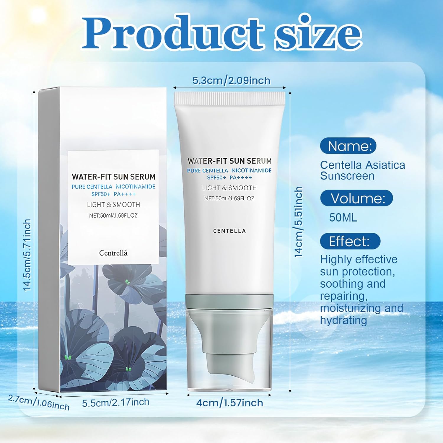 Centella Sunscreen SPF 50+, Korean Sunscreen, water-fit zonnecrème, gezichtscrème, dagelijkse zonwering voor het gezicht, hydraterende en uv-bescherming