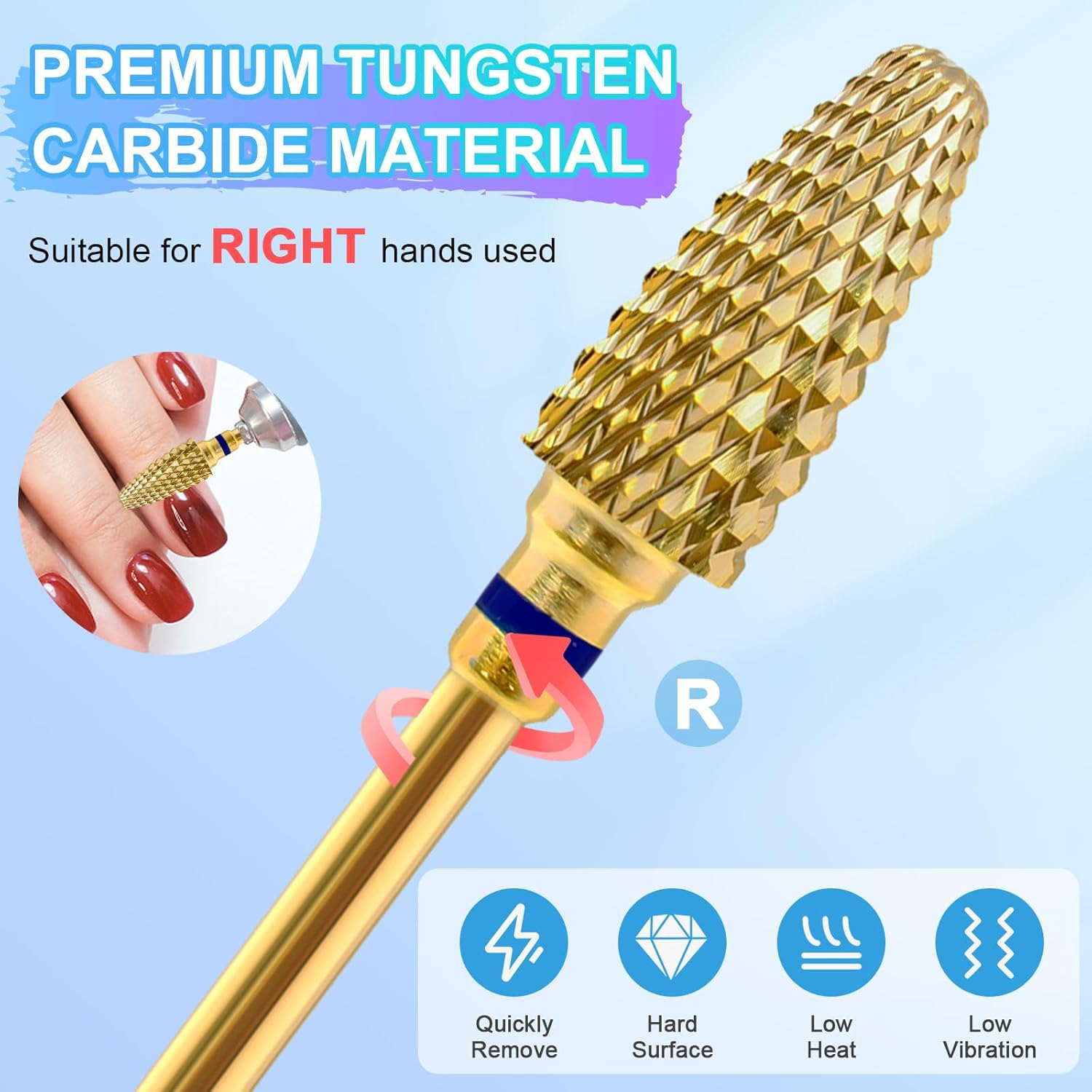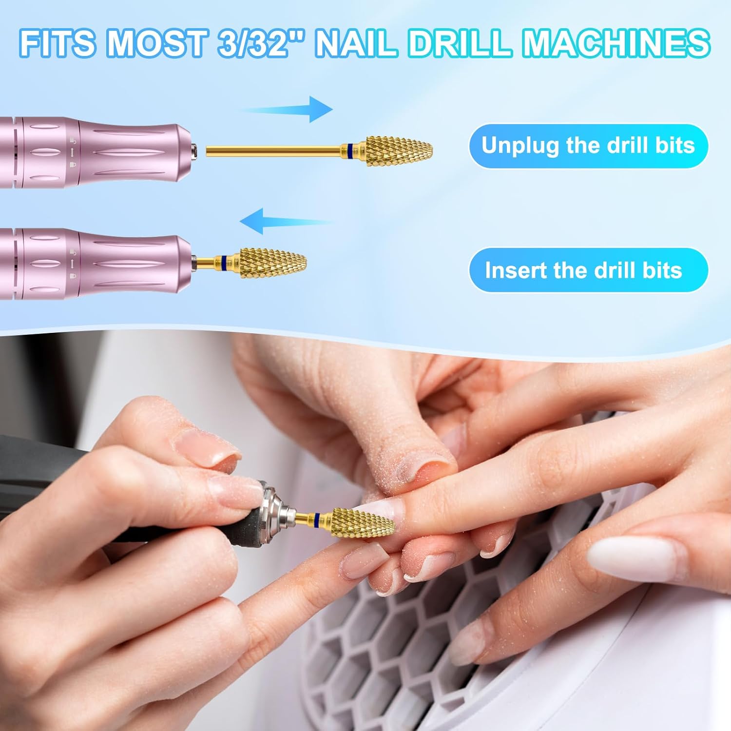 【Premium Tungsten Carbide Nail Milling Bits】Made of high-quality tungsten carbide material, which is stable and sharp enough to remove acrylic nails, hard gel nails, thick extension nails, builder gel nails and natural nails. With high-quality material and rigorous test design, these nail milling bits produce less dust under low friction and heat, which protects the skin from overheating.