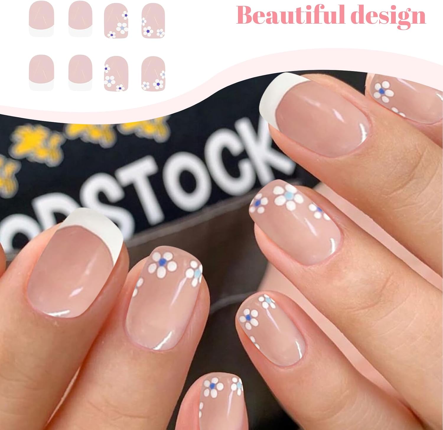 CharmBurst 24 Pieces Adhesive Nails Set, Press On Nails French Tips, False Nails In Various Sizes, Includes Nail Glue, Soft And Durable