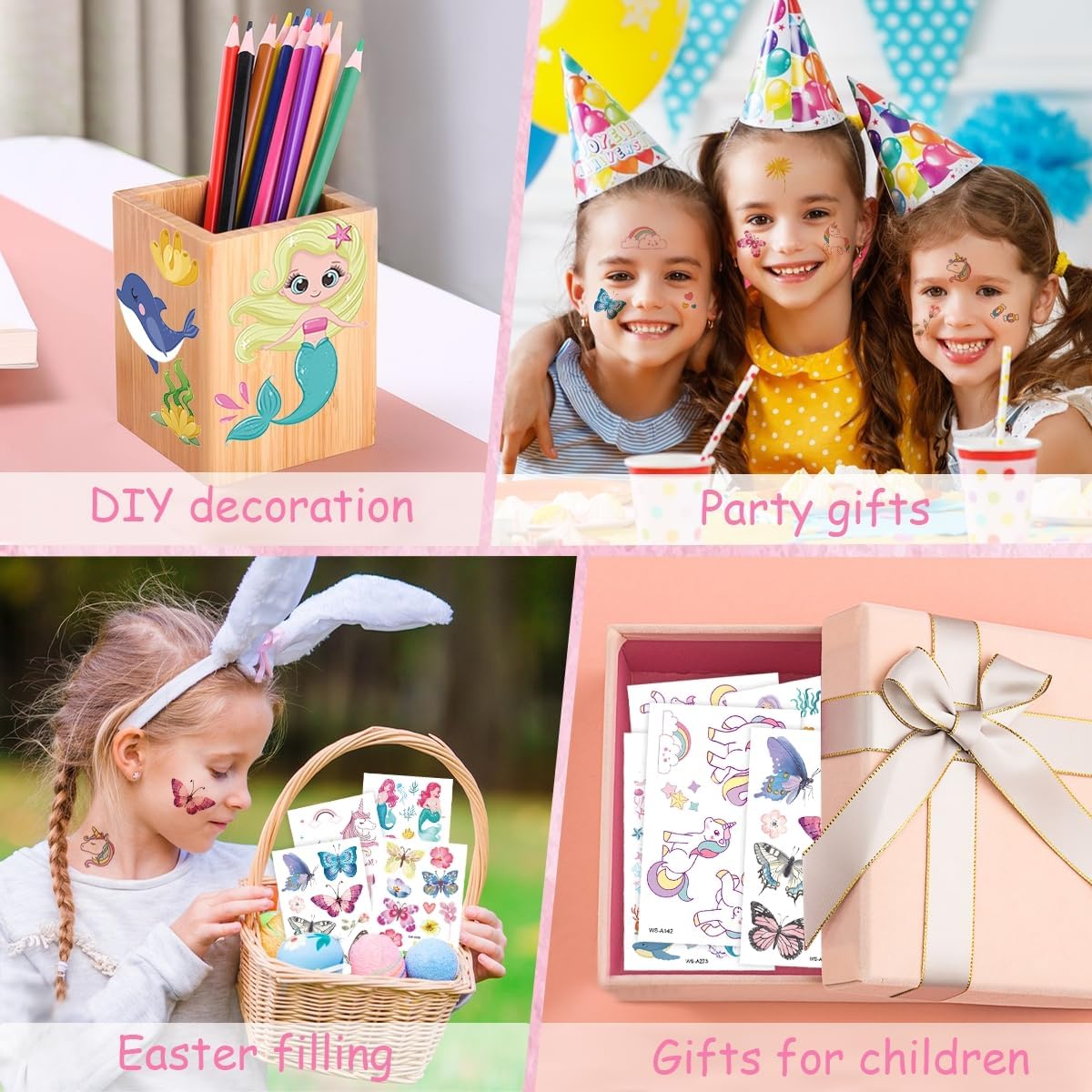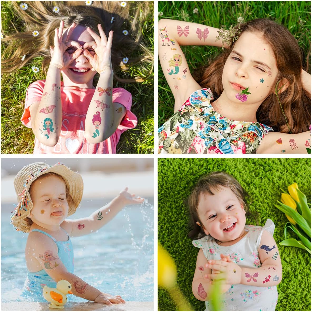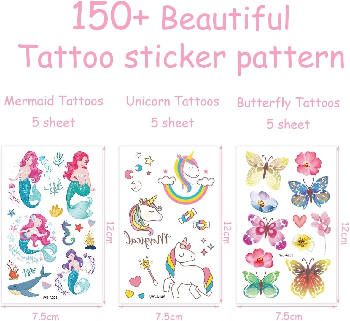 Children’s Girls Tattoos 150 Pieces Butterfly Unicorn Mermaid Cute Kids Party School Bag Waterproof Gift Idea