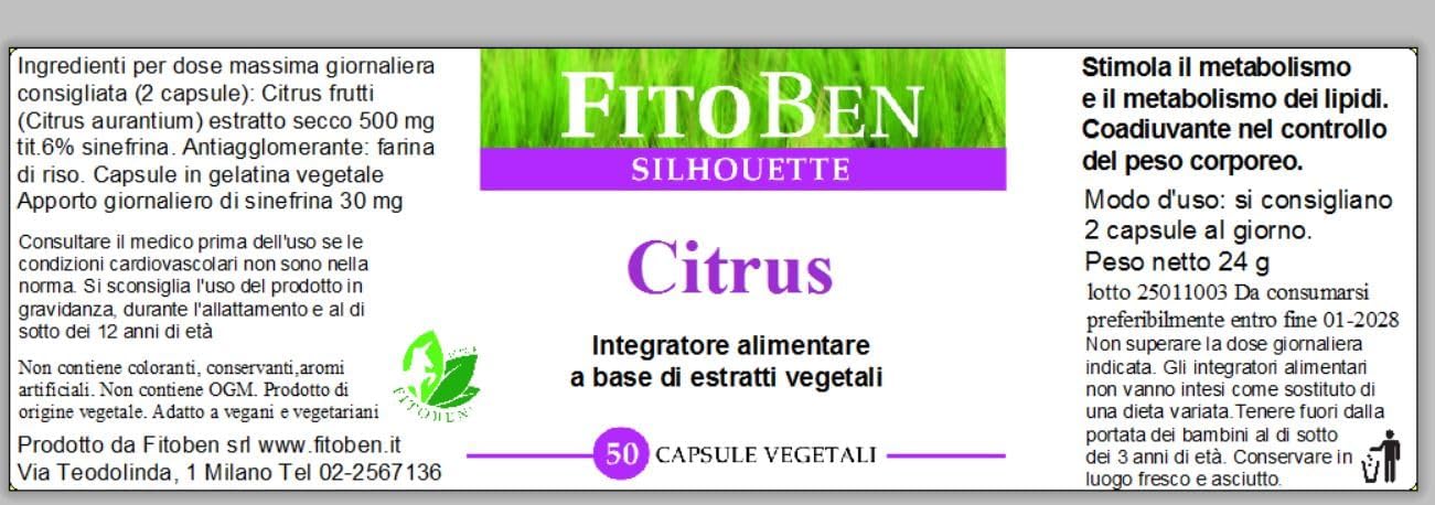 Citrus natuurlijk voedingssupplement ter stimulatie van het metabolisme en het metabolisme van lipiden. Helpt het evenwicht van het lichaamsgewicht. 50 plantaardige Cps