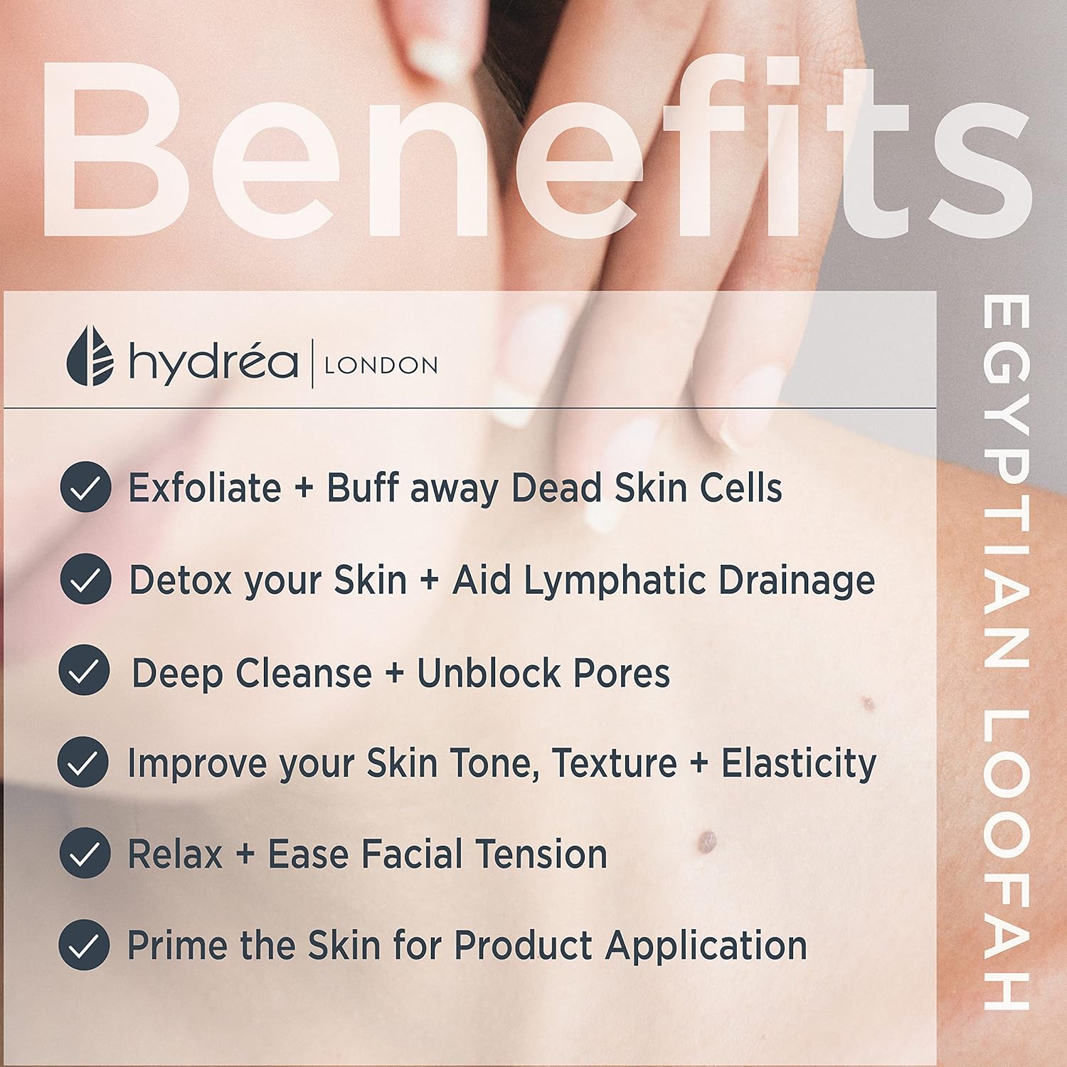 Diepe peeling – Deze Hydrea London Egyptische organische loofah heeft een los weefsel met dikke flexibele vezels die uitzetten als ze nat zijn om de ideale textuur te creëren om je gezicht zachtjes te exfoliëren in bad of onder de douche. Deze loofah face pad exfolieert diep om onzuiverheden te verwijderen, poriën te deblokkeren, de teint te verbeteren en dode huidcellen te verwijderen.