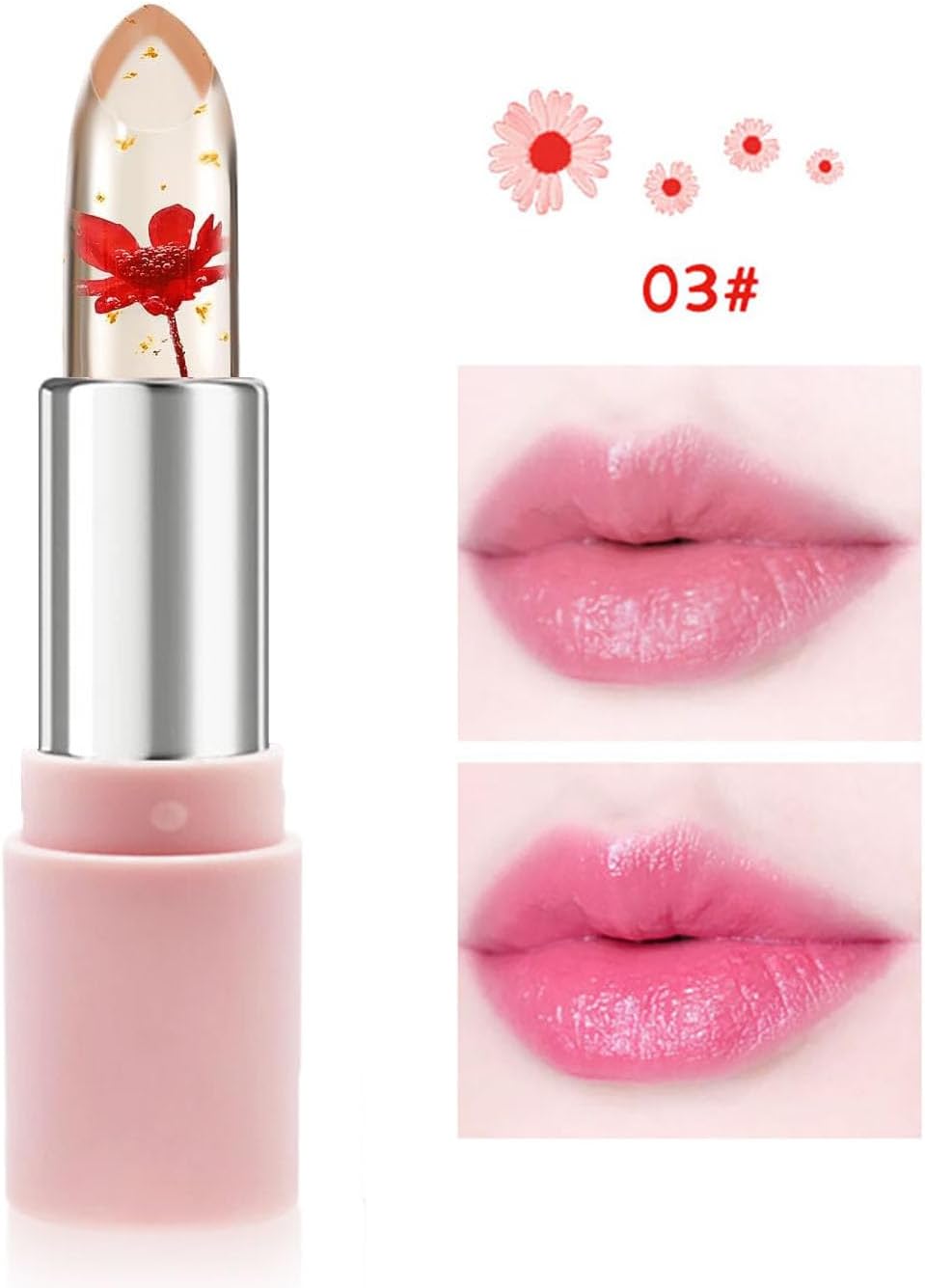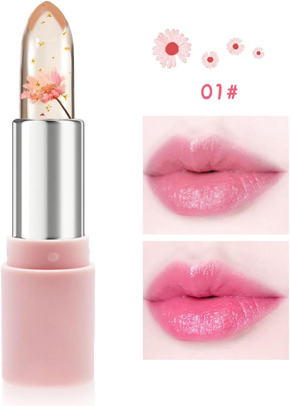 1 review for Clear Flower Jelly Lipstick, 3 Packs of Nutritious Moisturizer, Lip Balm, Temperature Change, Matt, Durable Lip Gloss (Pink-3)