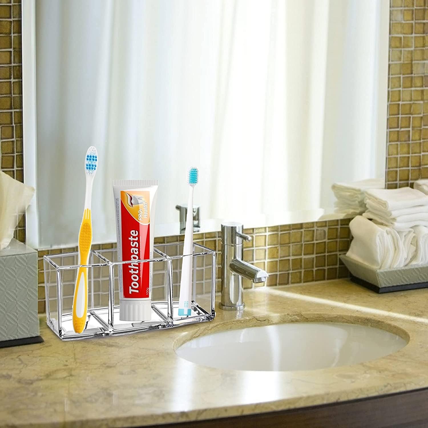 Clear Makeup Brush Organizer 3 Slot Cosmetic Brushes Storage Acrylic Makeup Display Holder For Brushes Eyeliner Lipstick Eyebrow Pencil