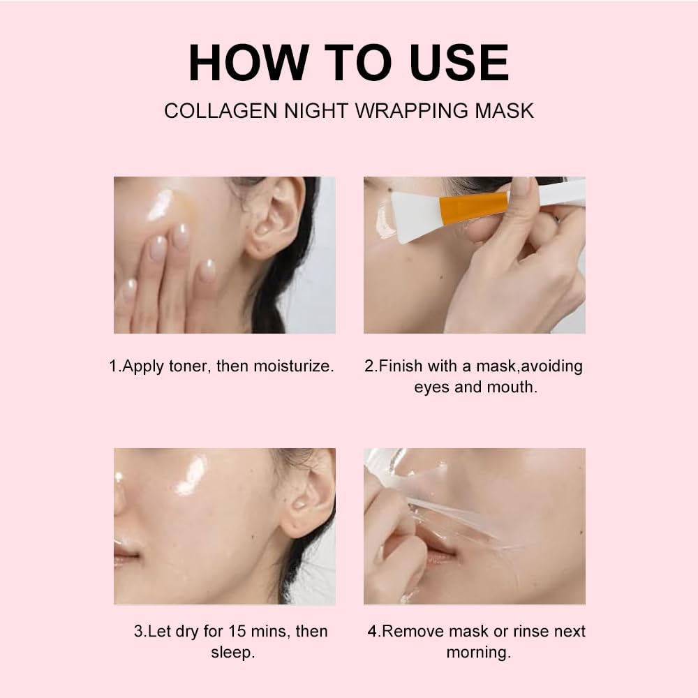 Collageen nachtmasker, collageen-peeling-masker, collageen night wrapping masker, peel-off gezichtsmasker, hydraterend en verstevigend, nachtmaskers