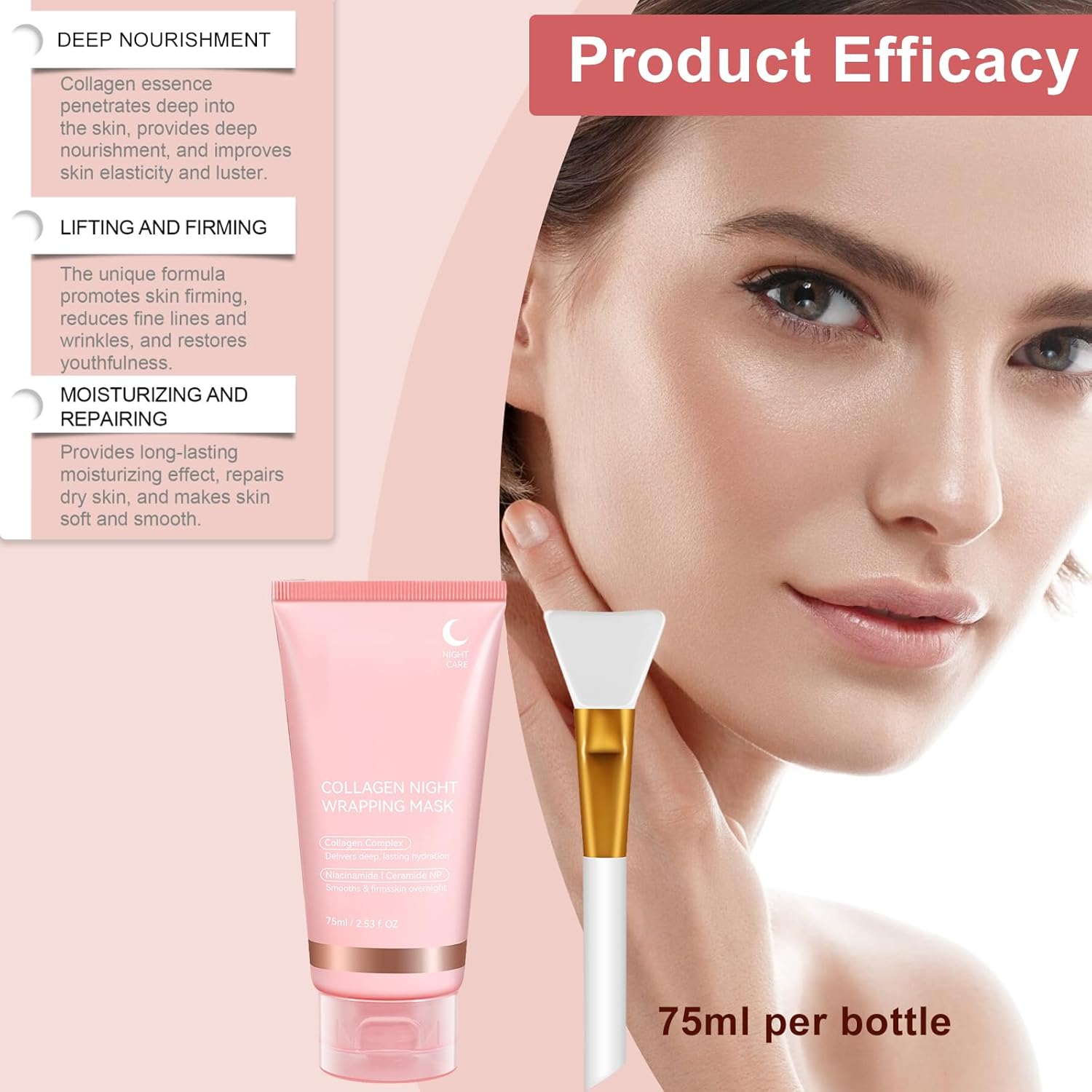 Collageen Night Wrapping Mask, collageen masker, peel-off-masker, gezichtsmasker, biologisch collageen gezichtsmasker, elasticiteit en vocht, overnight masker, vermindert vermoeidheid en dofheid, 75