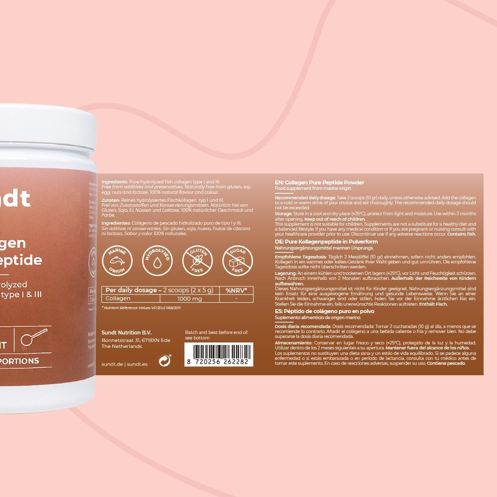 Ontdek de pure kracht van de natuur met Sundt collageenpoeder – pure collageenpeptiden, je dagelijkse metgezel voor holistisch welzijn. Deze nieuwe en verbeterde formule is speciaal ontwikkeld ter ondersteuning van huid, haar, nagels en gewrichten.