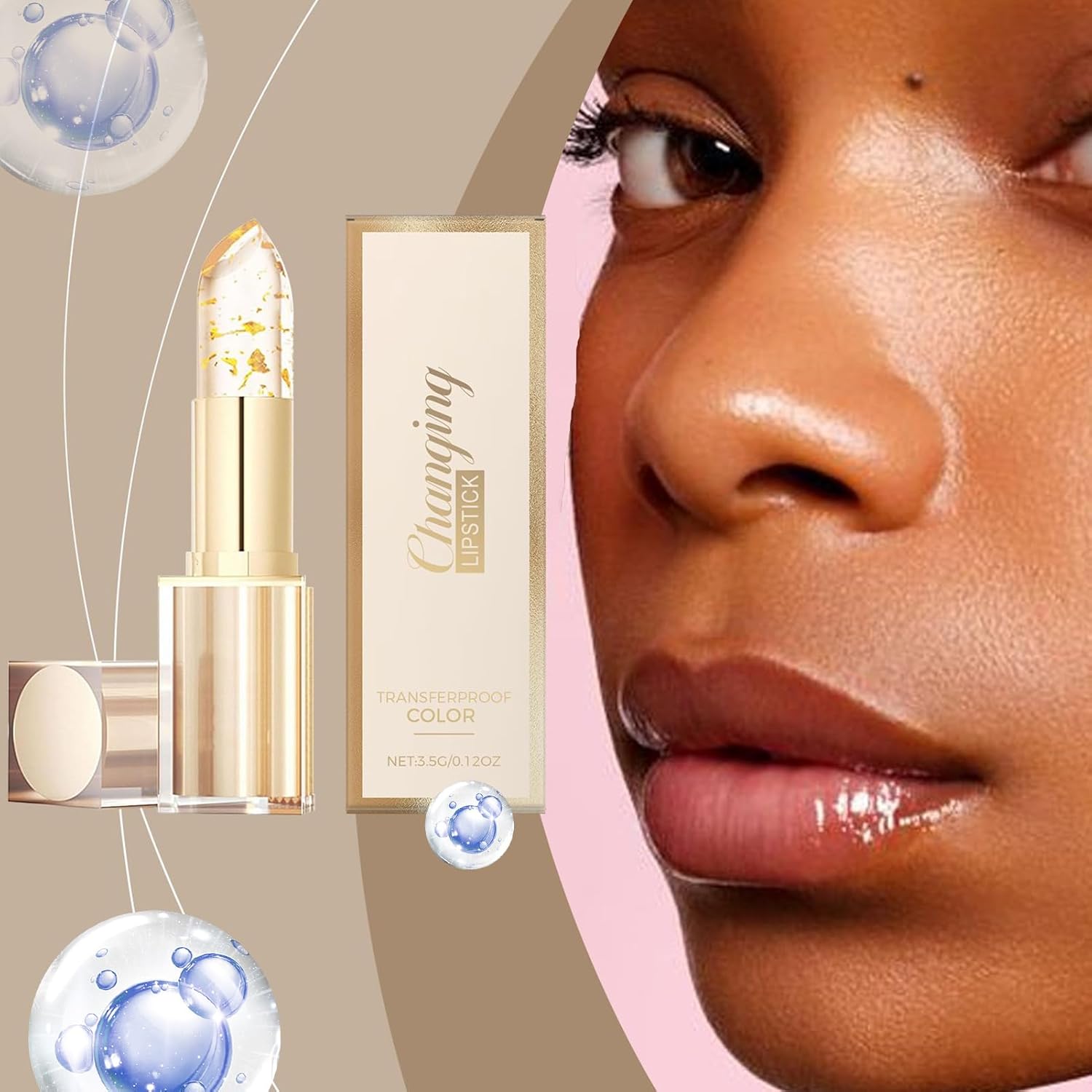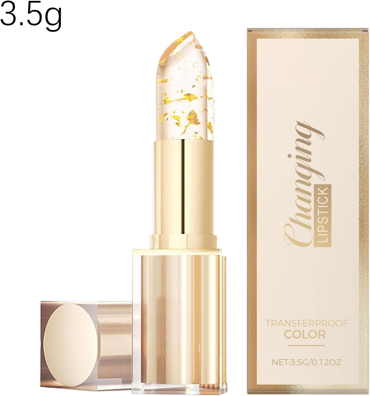 Color Changing Lipstick, Nourishing Plumping Balm, 3.5g Dewy Glow Lip Stick, Gold Foil Design, Long-Lasting Hydration for Makeup, Day & Night, Dating, Shopping