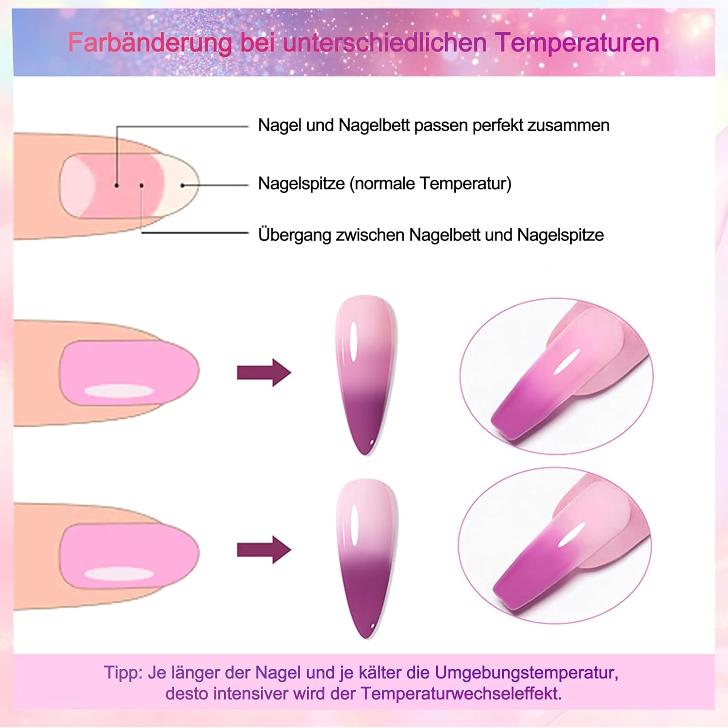 Easy to apply and remove: the thermal nail polish can be easily applied and removed. Enjoy breathtaking colour changes that are suitable for beginners and professionals alike.