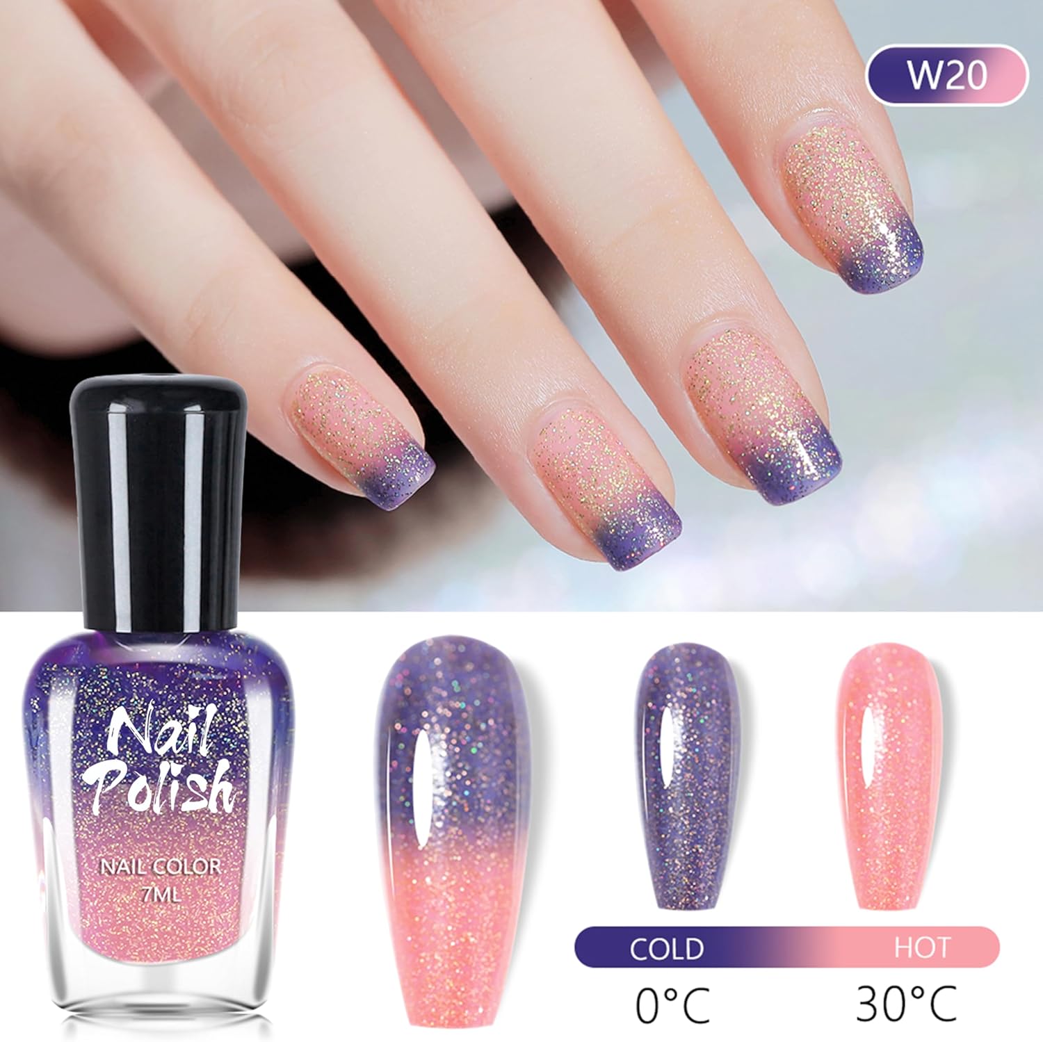 Colour Changing Nail Polish Pink Blue Temperature Controlled Nail Polish with Colour Changing Effect 5 ml Long Lasting Quick Dry Nail Polish Without UV Lamp for Women and Girls (Purple)