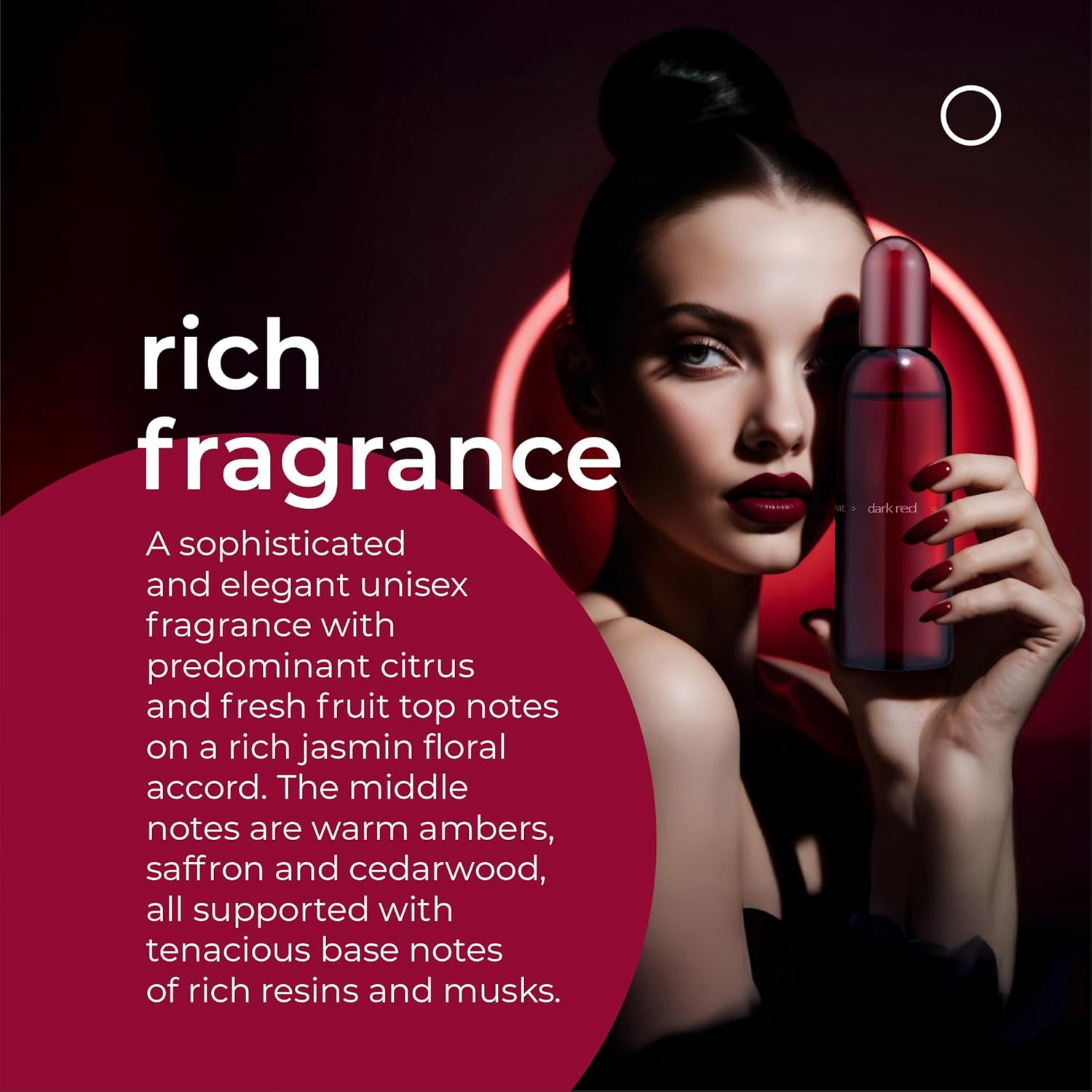 Verfijnd en elegant: Colour Me Dark Red is een rijk parfum voor zowel heren als dames waarin topnoten van witte perzik samensmelten met warme hartnoten van amberhout en saffraan en basisnoten van ceder, hars en muskus