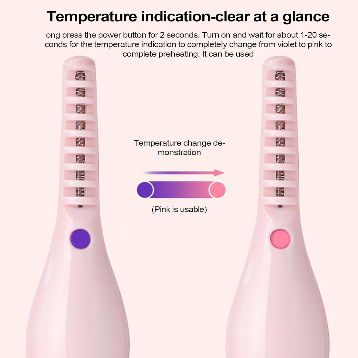 Precision Eyelash Styling: Equipped with a fine comb design, this eyelash curler ensures precise application, separating and curling lashes without clumping The heated comb delivers long-lasting curl results with ease