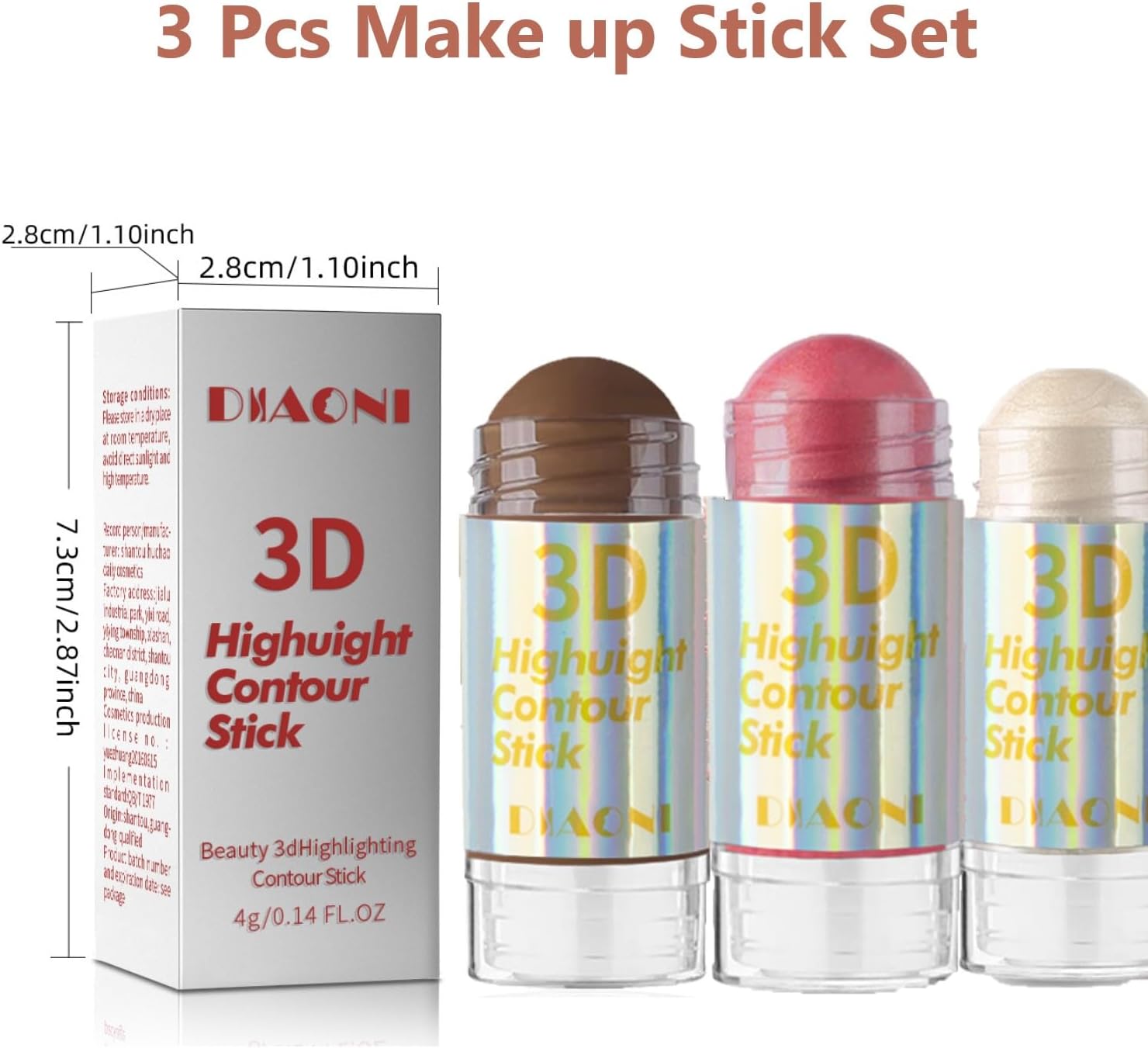 Deze contourstickset heeft 1 blusher stick, 1 highlighter stick en 1 bronzer borduurcrèmige texturen, gemakkelijk zijdezacht op de huid aan te brengen, ideaal voor 3D-make-up van het gezicht