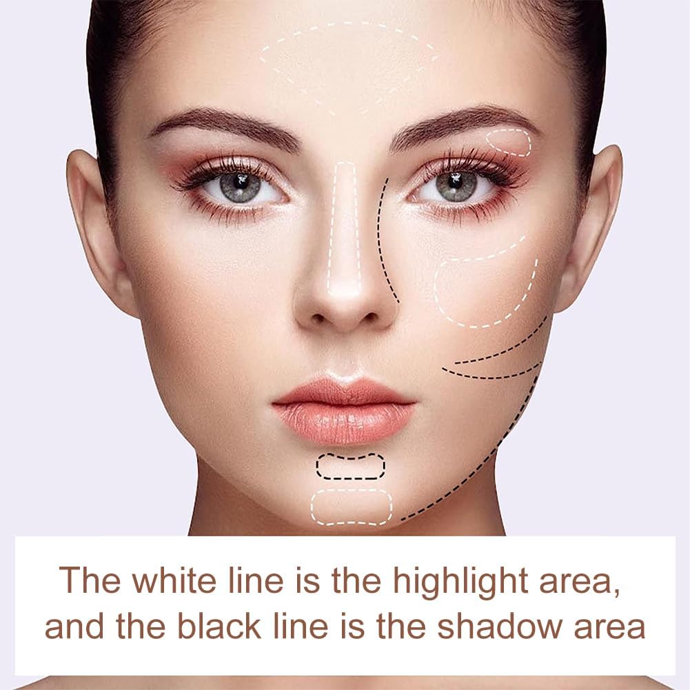 Eenvoudig te bedienen: breng de lichtste schaduw aan op de hoogste punten van het gezicht, verf de donkerste schaduw langs de natuurlijke contour, meng het dan goed om de contouren te ondersteunen, druk licht op haarwortels, wangen en kin om driedimensionaal en delicaat te lijken. Verwijder de randen en hoeken van het gezicht.