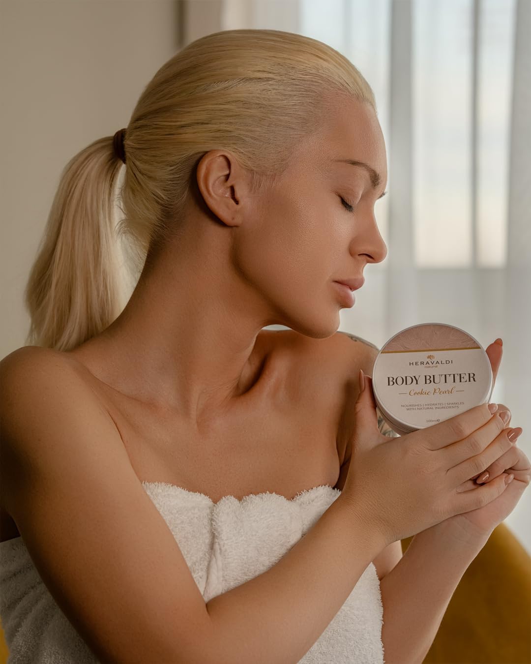 Dompel jezelf onder in de luxe van onze goddelijke body butter met een glinsterend effect, ontworpen om je huid onweerstaanbaar stralend en glad te maken. Cookie Pearl combineert een unieke mix van natuurlijke oliën en betoverende geuren en zorgt voor diepe hydratatie en voeding, waardoor je huid zijdezacht en glanzend wordt. De lichte textuur smelt moeiteloos in de huid en omhult het met een delicate glans en een sensueel aroma dat je de hele dag zal vergezellen. Ideaal voor alle huidtypes, Cookie Pearl levert niet alleen intensieve verzorging, maar geeft ook een verbluffende uitstraling, waardoor een gevoel van luxe en perfectie ontstaat. Geniet van deze weelderige verzorging en onthul de glans en zachtheid van uw huid bij elke toepassing!
