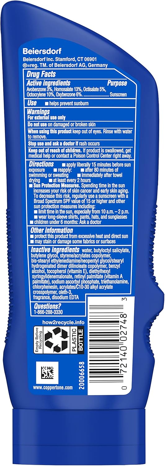 Ongeacht voor welke outdooractiviteiten je gepassioneerd bent, Coppertone Sport zonnebrandcrème lotion zit in je team. Ontworpen om sterk te blijven als je transpireert, beschermt deze krachtige zonwering je tegen de zon met een duurzame en waterafstotende formule (80 minuten). Deze zonwering biedt een breed spectrum UVA/UVB-bescherming en bevat vochtinbrengende crèmes en vitamine E om de antioxiderende afweer van je huid te tanken.