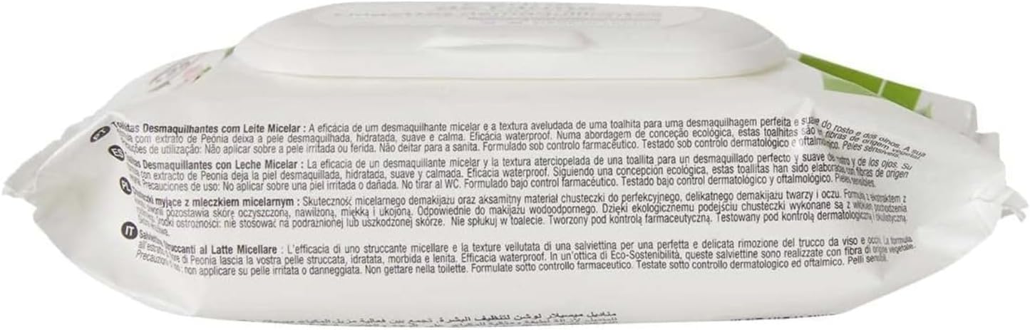 Effectief en volgens de norm: het product verwijdert make-up van het gezicht, hydrateert en kalmeert, het heeft een waterdichte eigenschap. Zoals alle make-up remover doekjes, micellaire make-up remover doekjes hebben kalmerende en decongestivum eigenschappen die de huid niet irriteren
