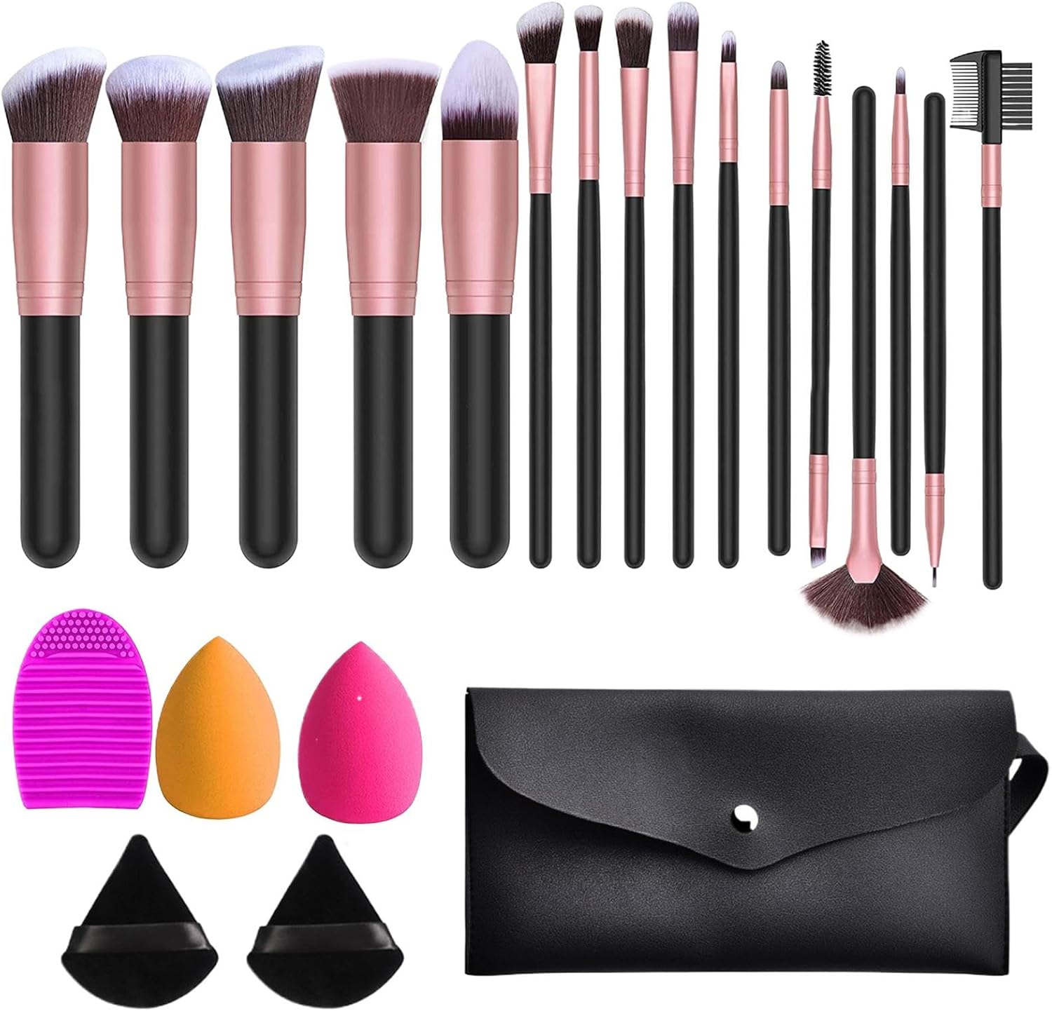 Complete 20-delige set: deze make-upborstelset bevat 20 essentiële borstels en sponges, biedt alle tools die je nodig hebt voor make-up, van oogschaduw en blush tot concealer en foundation, ideaal voor beginners en ervaren gebruikers