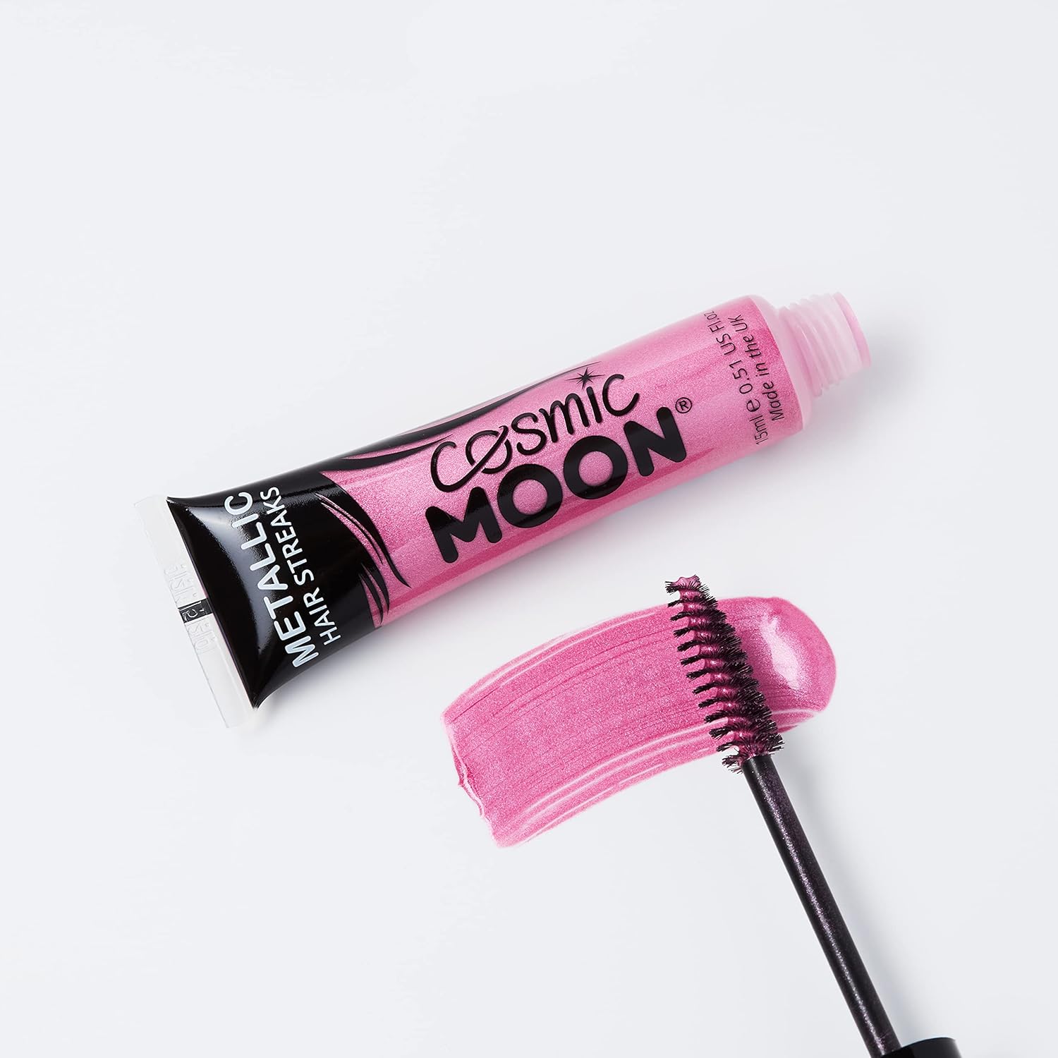 Create metallic hair strands in your hair with our Cosmic Moon metallic hair strands. With the included brush, you can create waves or subtle colour lines to create a breathtaking look.