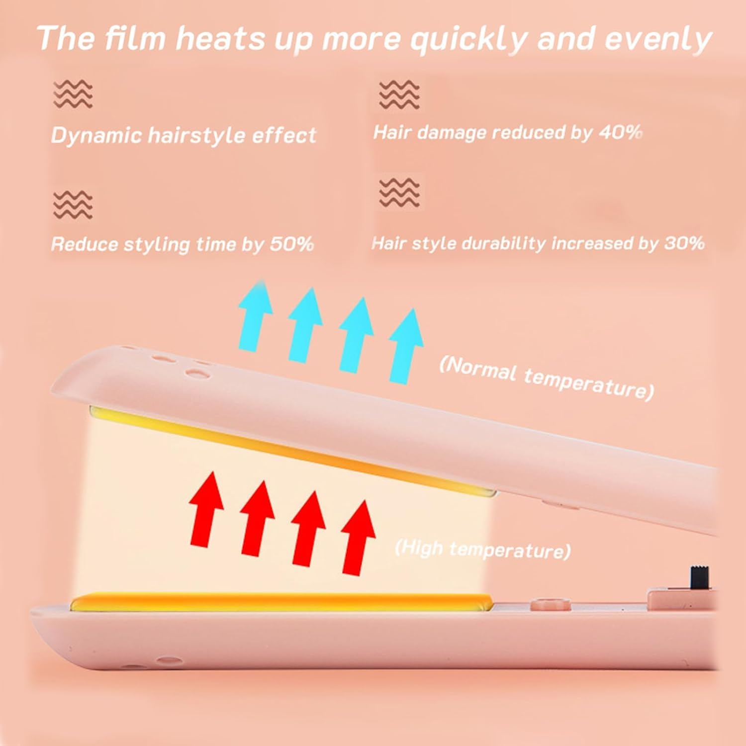 Ceramic Technology: Featuring ceramic plates for even heat distribution, this mini dual purpose curling iron for short hair minimizes heat damage while delivering smooth, long-lasting curls or a straight, polished finish every time