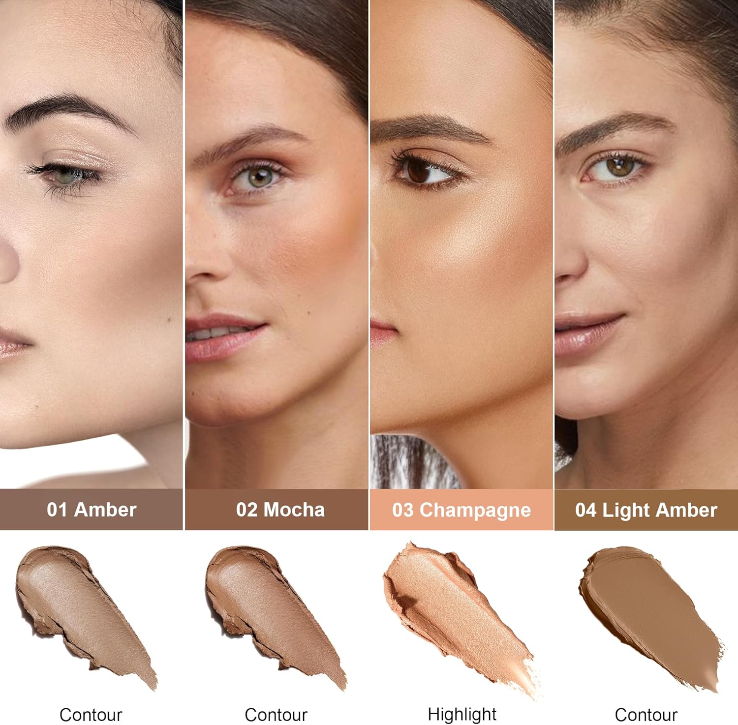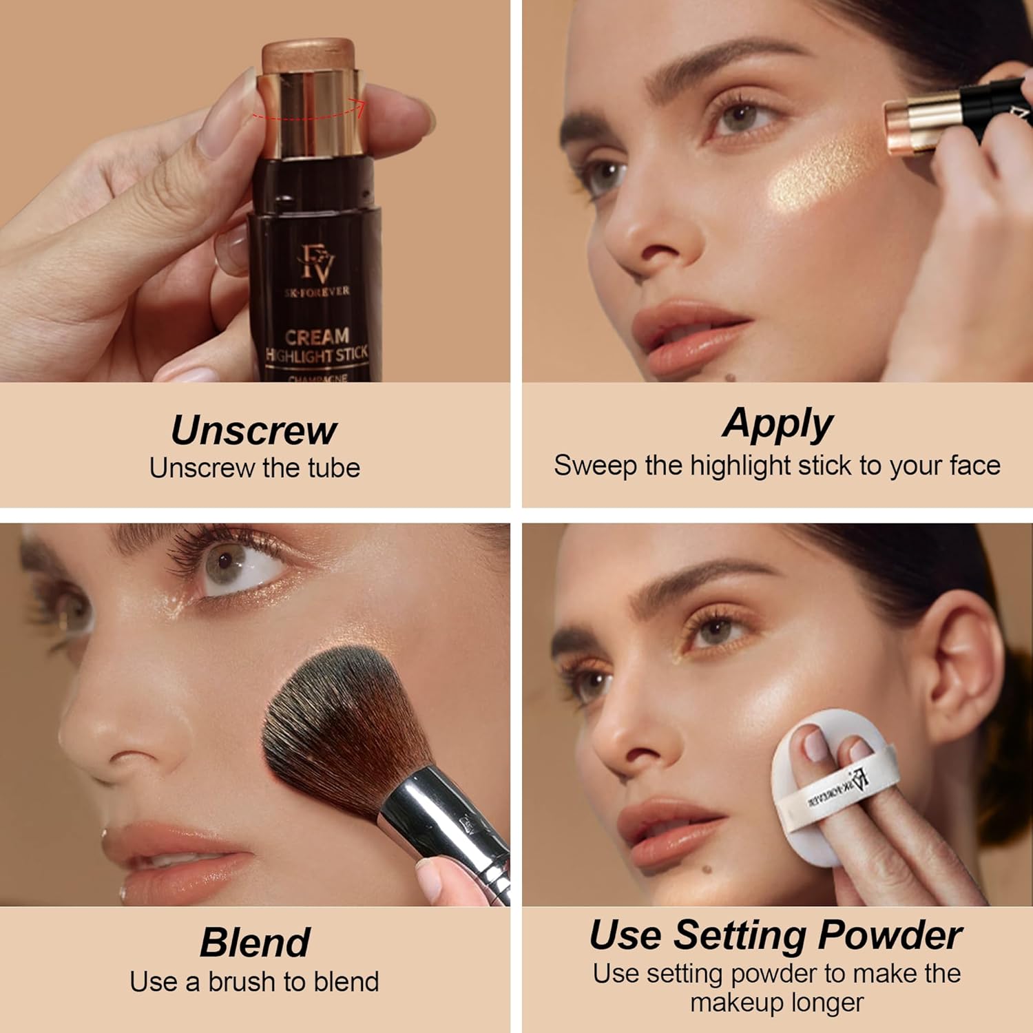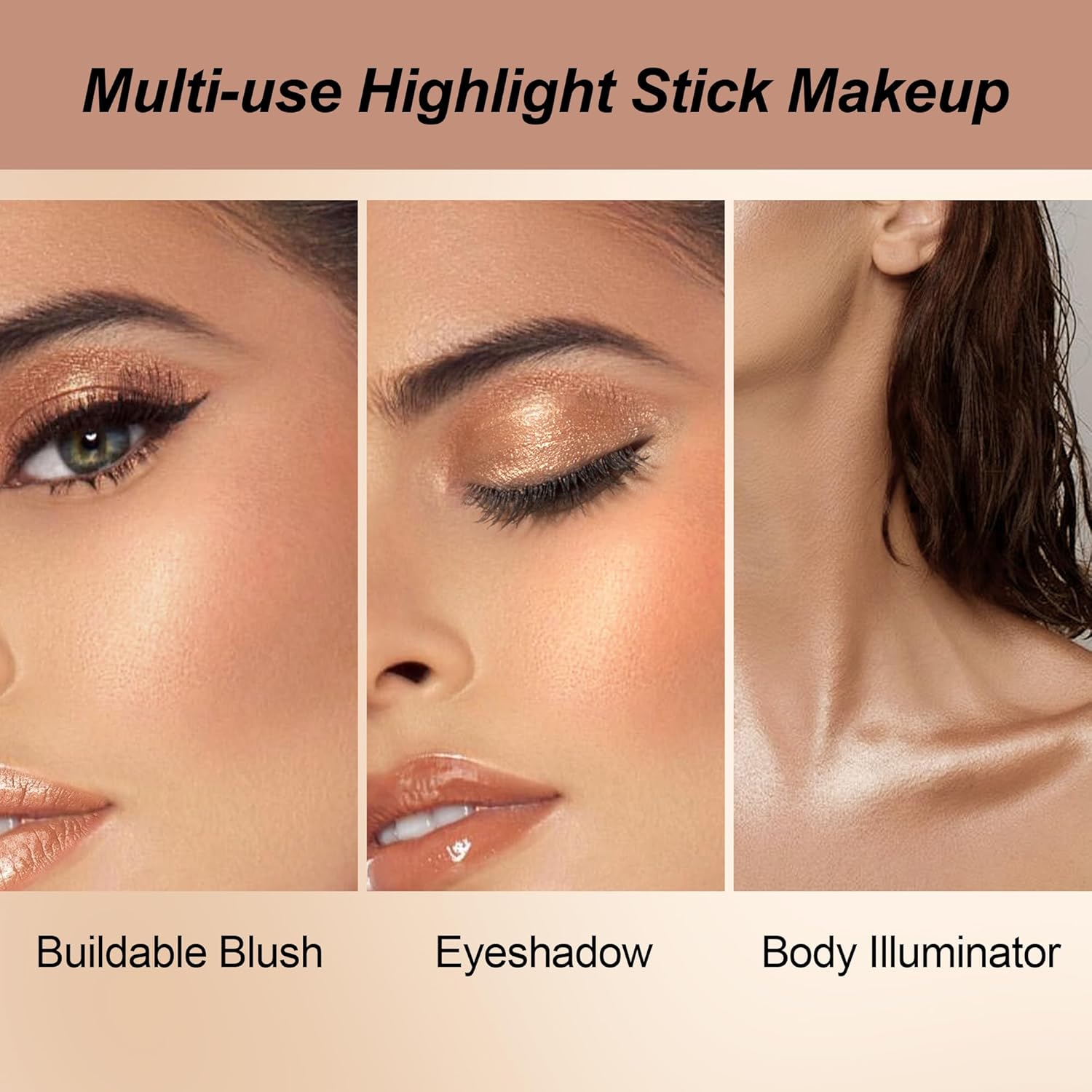 Cream Highlighter Stick, Blendable & Long Lasting Highlight Stick met Natuurlijke Finish, Glinsterende Gezicht Highlighter Make-up voor Gloedvolle Huid, 03 Champagne